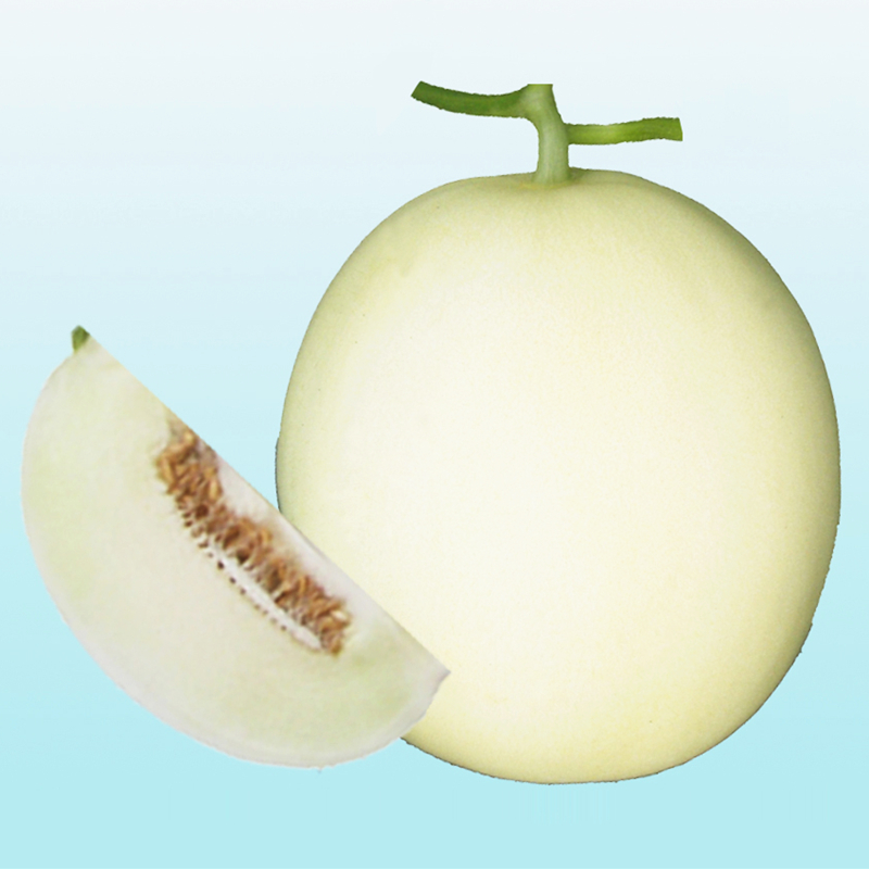 省力多收,特别早熟白皮白肉甜瓜品种。瓜香味浓,未开即可闻到香味。果肉乳白细腻,甘甜可口,果实丰圆形,果重1500g左右,整齐度高。糖度可稳定在15-16度。座果38天左右收获。早熟性好,农户可早春栽培,上市早深受市场欢迎。