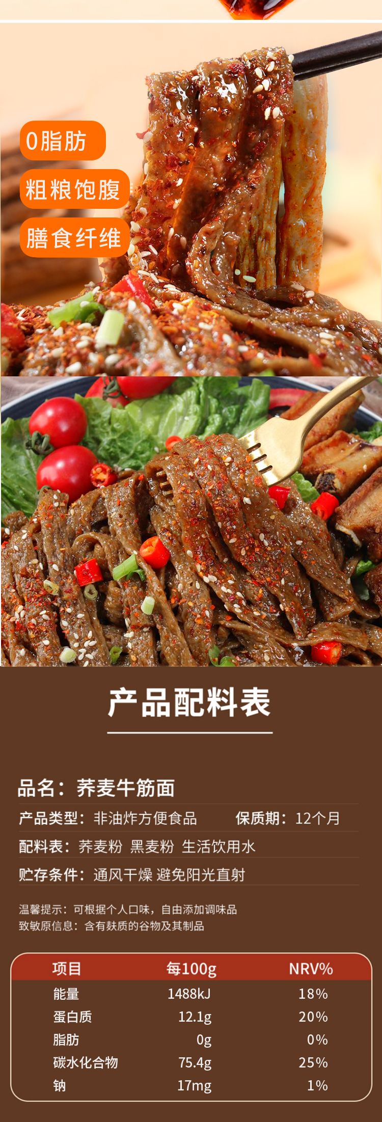 荞麦牛筋面120g/袋*20