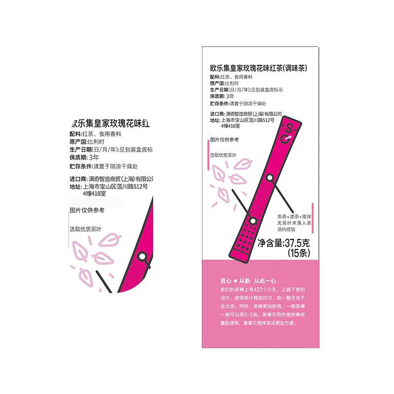 【中欧班列精选2盒】比利时茶棒 原装进口欧乐集皇家玫瑰红茶棒 37.5g/盒