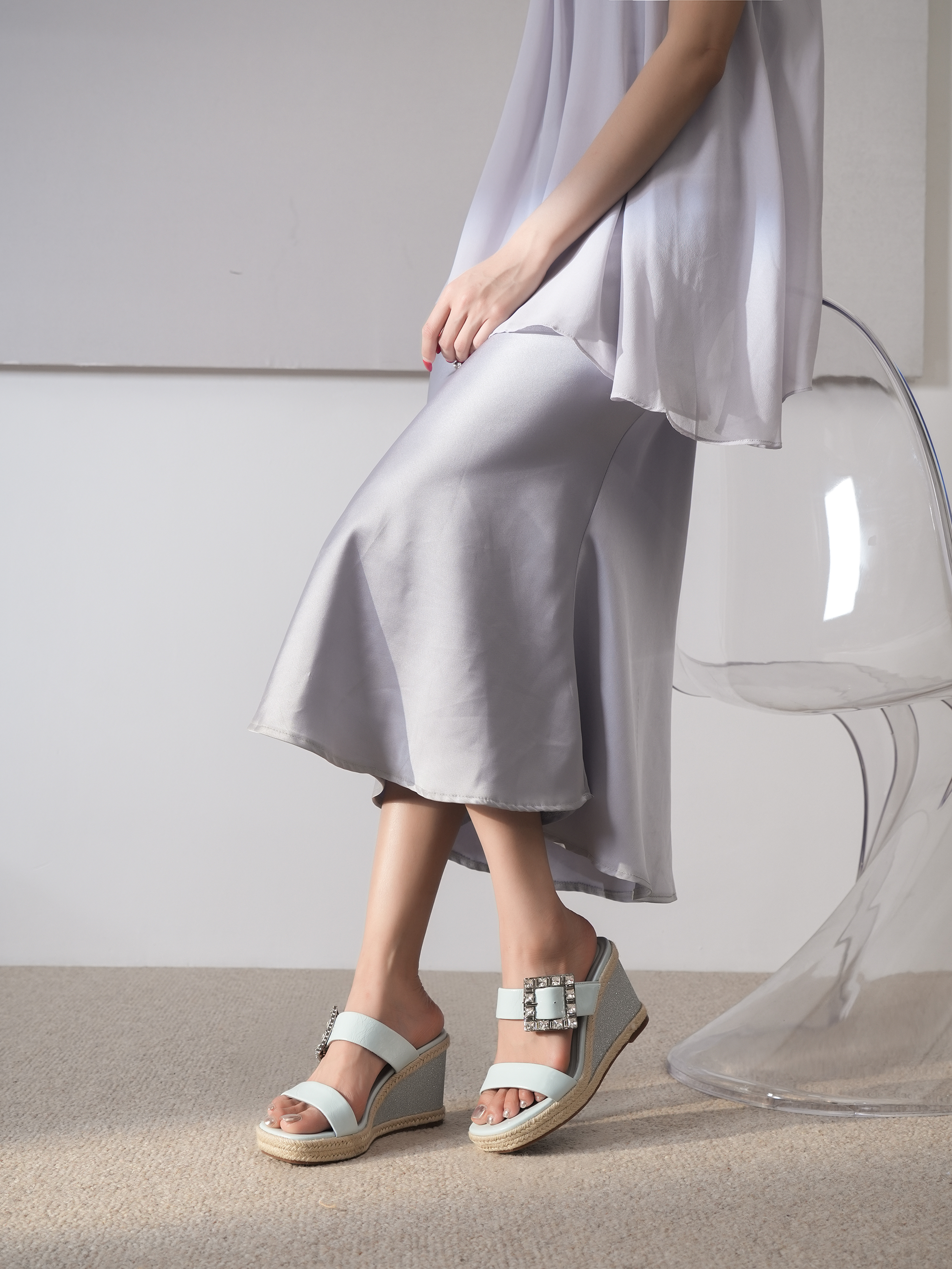 豪麟名鞋奥莱迪嘉女鞋凉拖牛皮革DJYYA51WL006蓝色 原价1660元