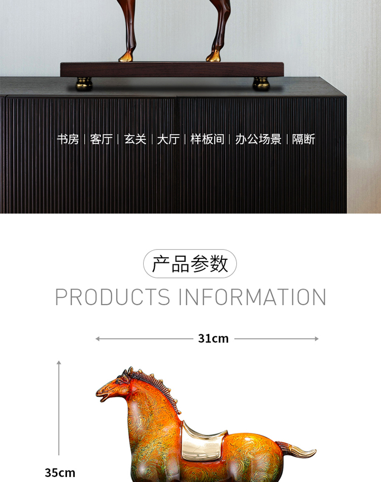 E-YM-FK184胡桃木底座大漆将军马摆件( 310*120*350)