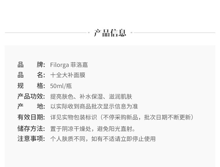 FILORGA法国进口菲洛嘉十全大补面膜泥涂抹式50ml亮白提亮 补水保湿紧致润肤面膜