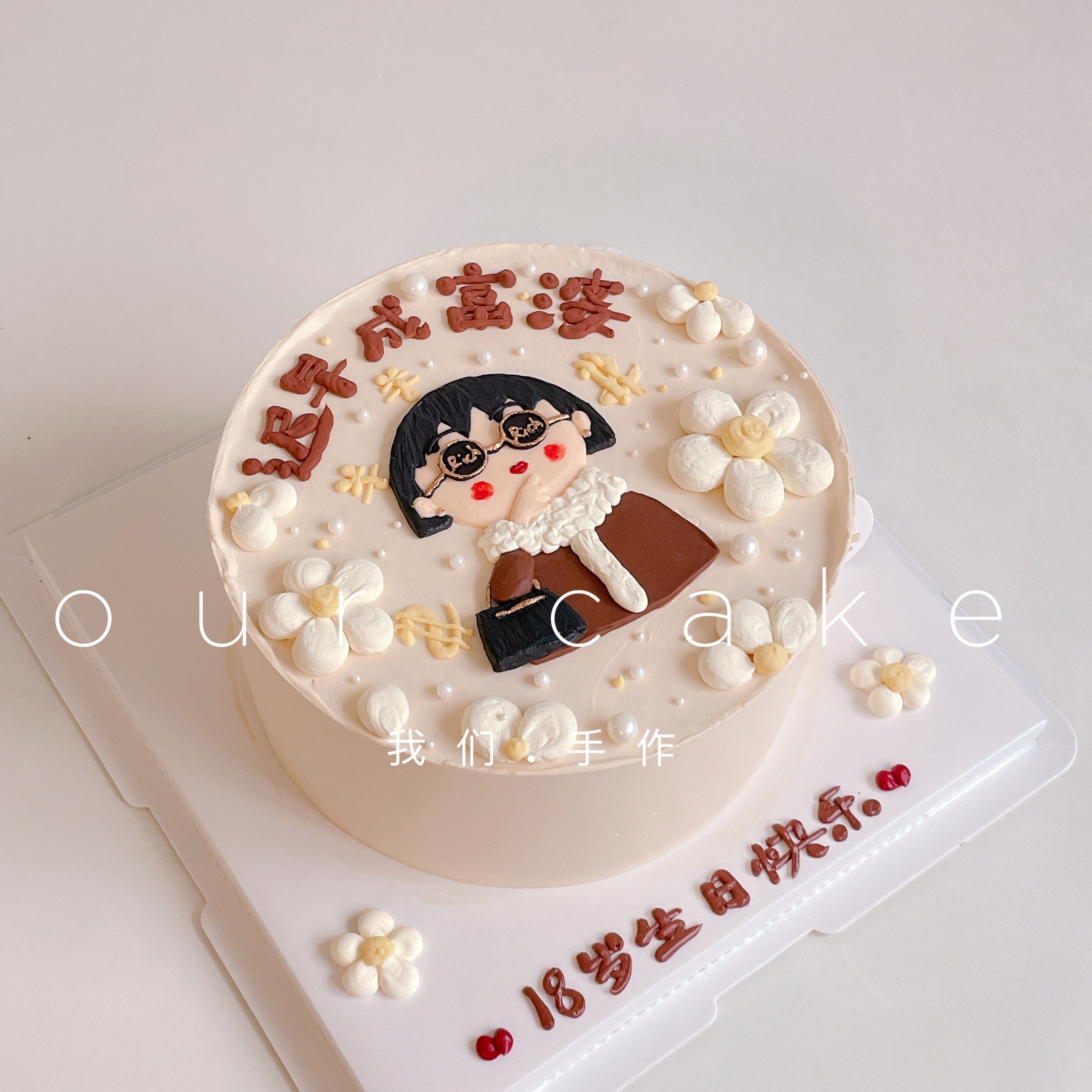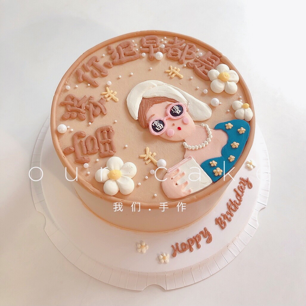 富婆你迟早都是!送女生闺蜜老婆的手绘蛋糕-低糖处理无添加
