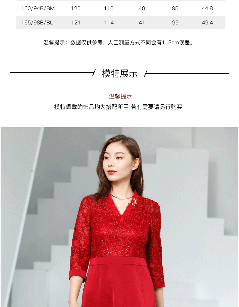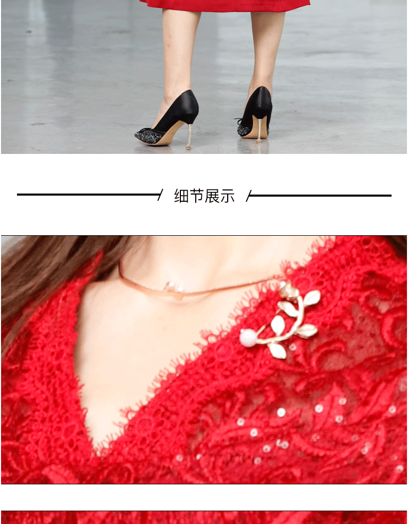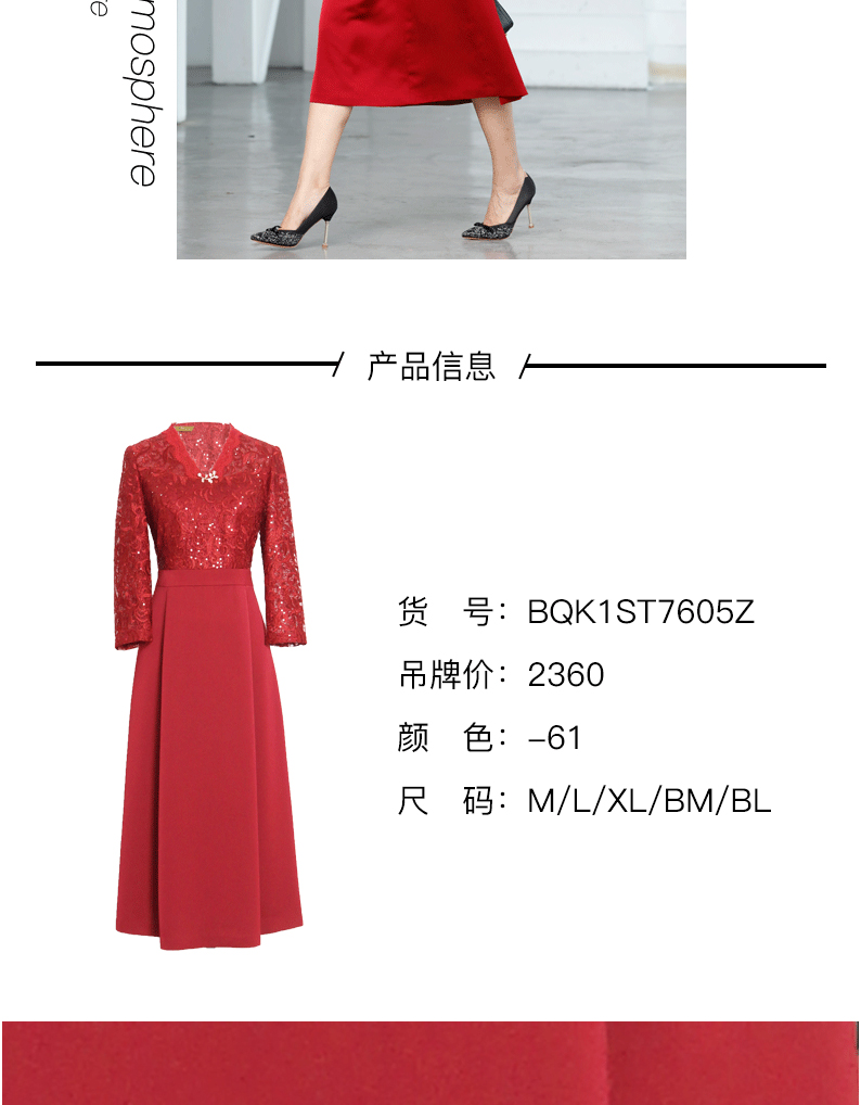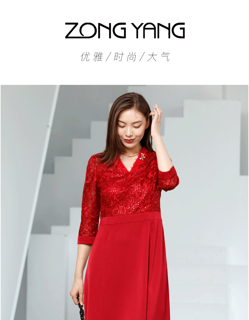 宗洋V领蕾丝收腰连衣裙BQK1ST7605Z-61