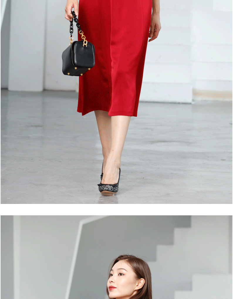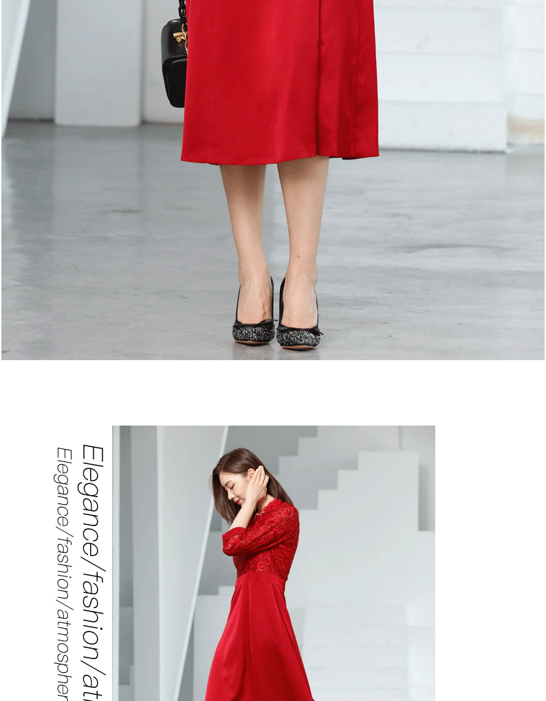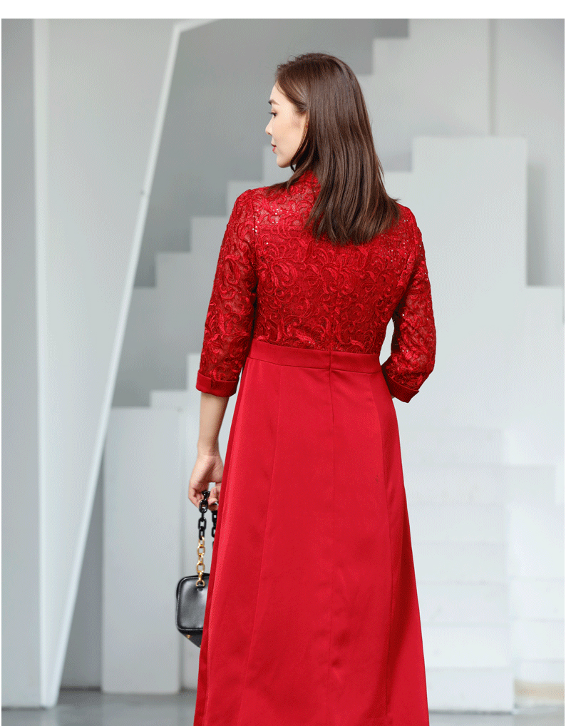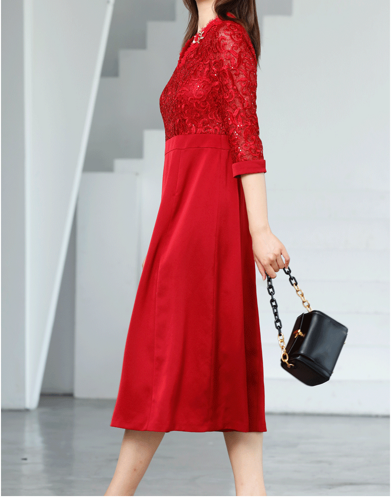 宗洋V领蕾丝收腰连衣裙BQK1ST7605Z-61