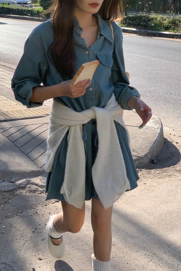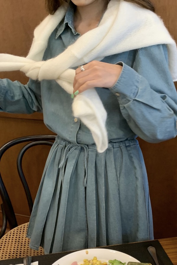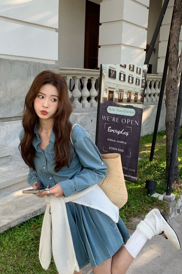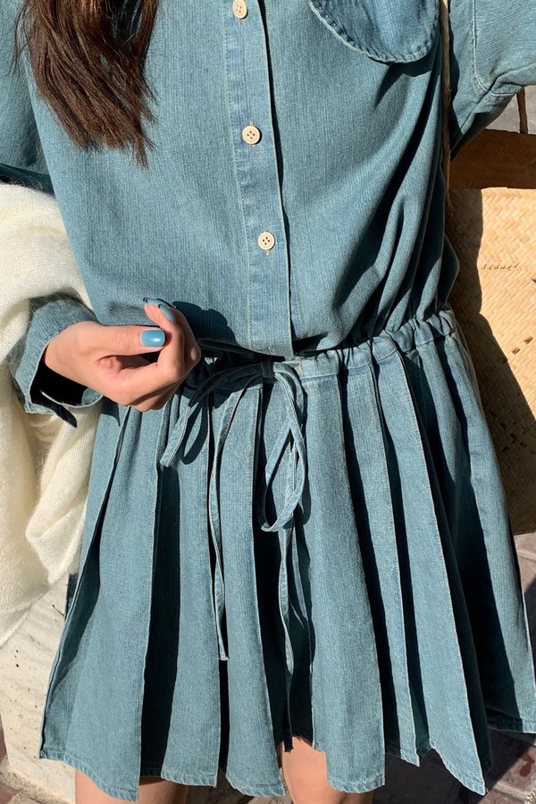 WHO KNOWS 复古牛仔百褶连衣裙 20021