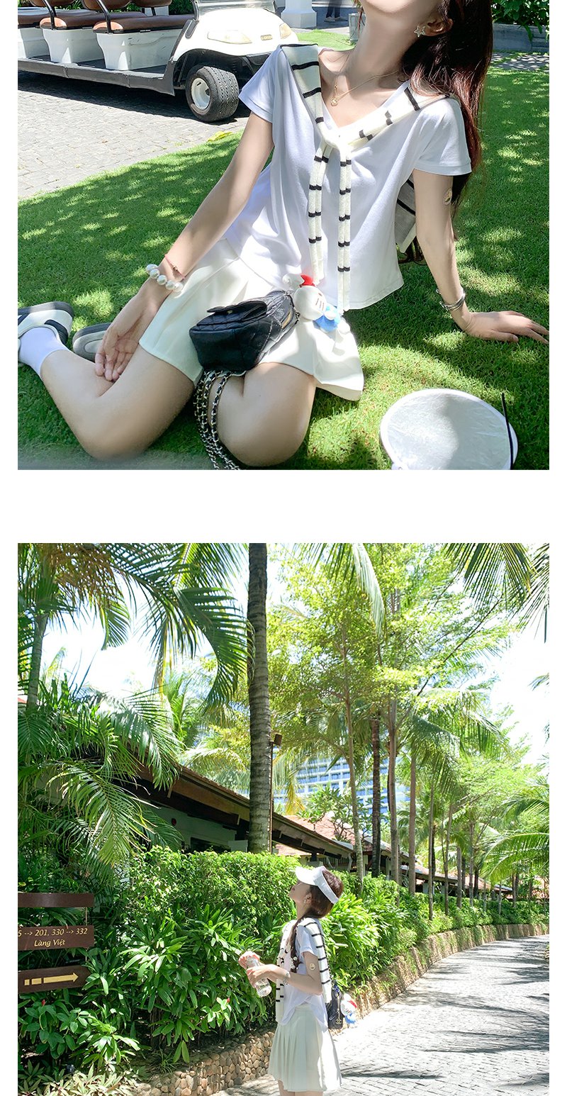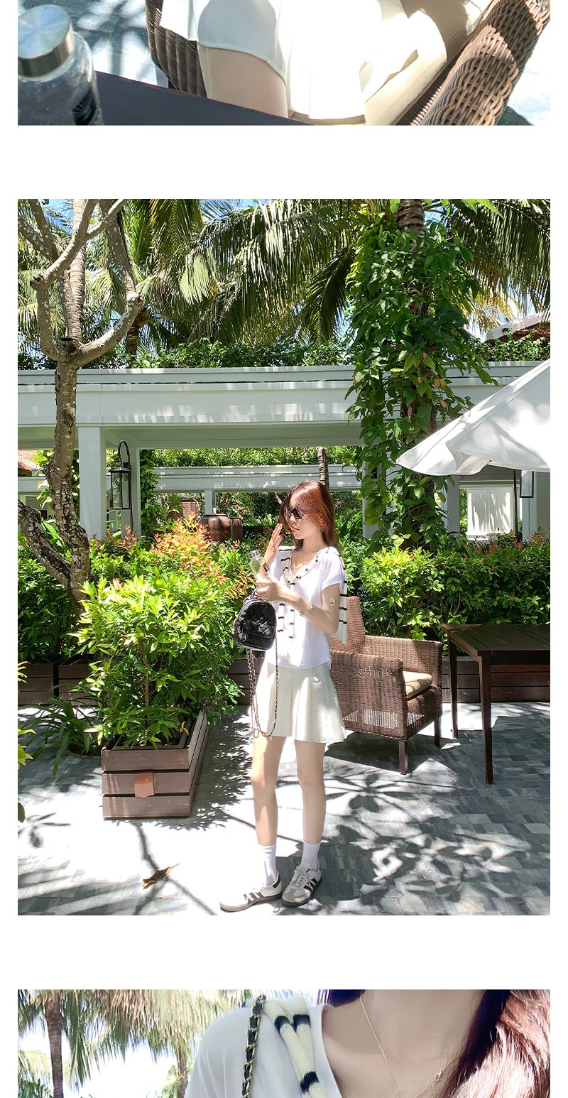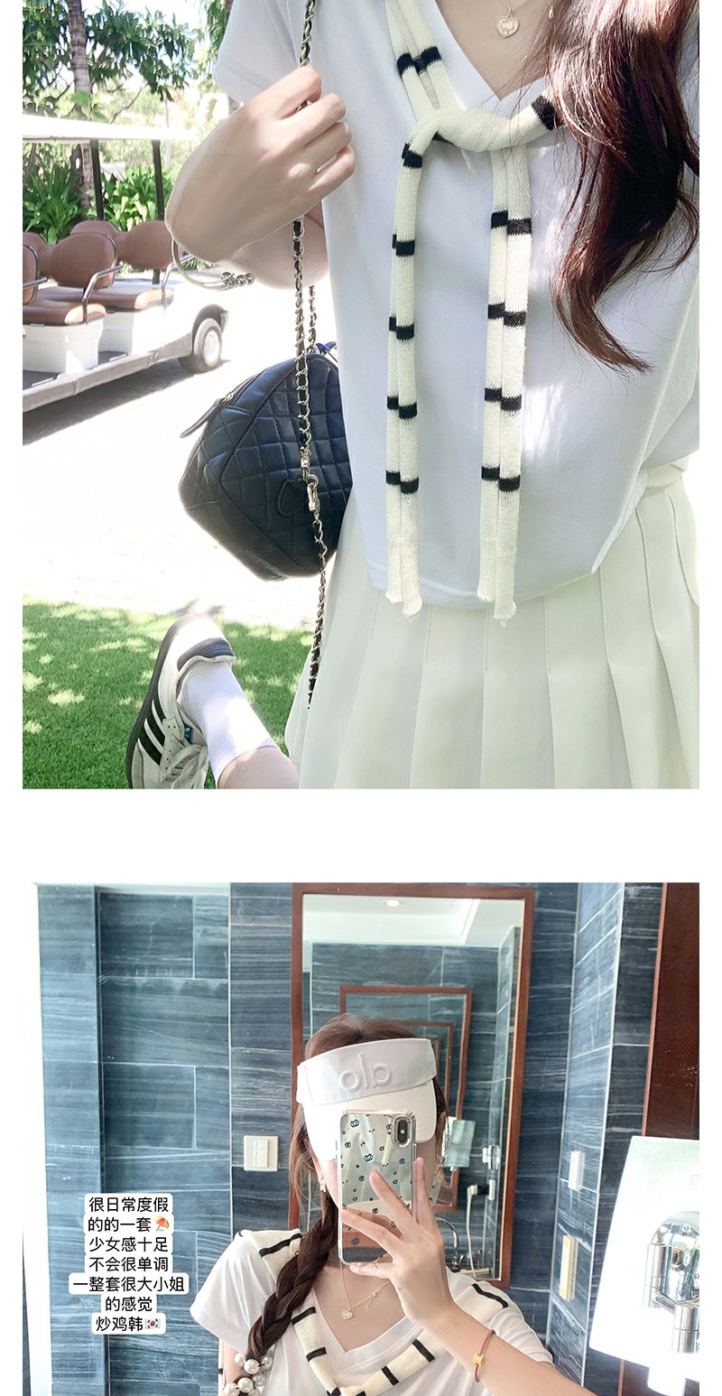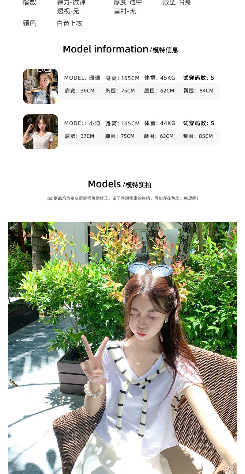 <曾小咸推荐>韩系简约纯色V领T恤短袖上衣