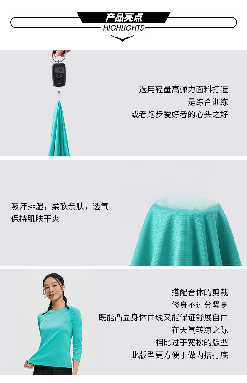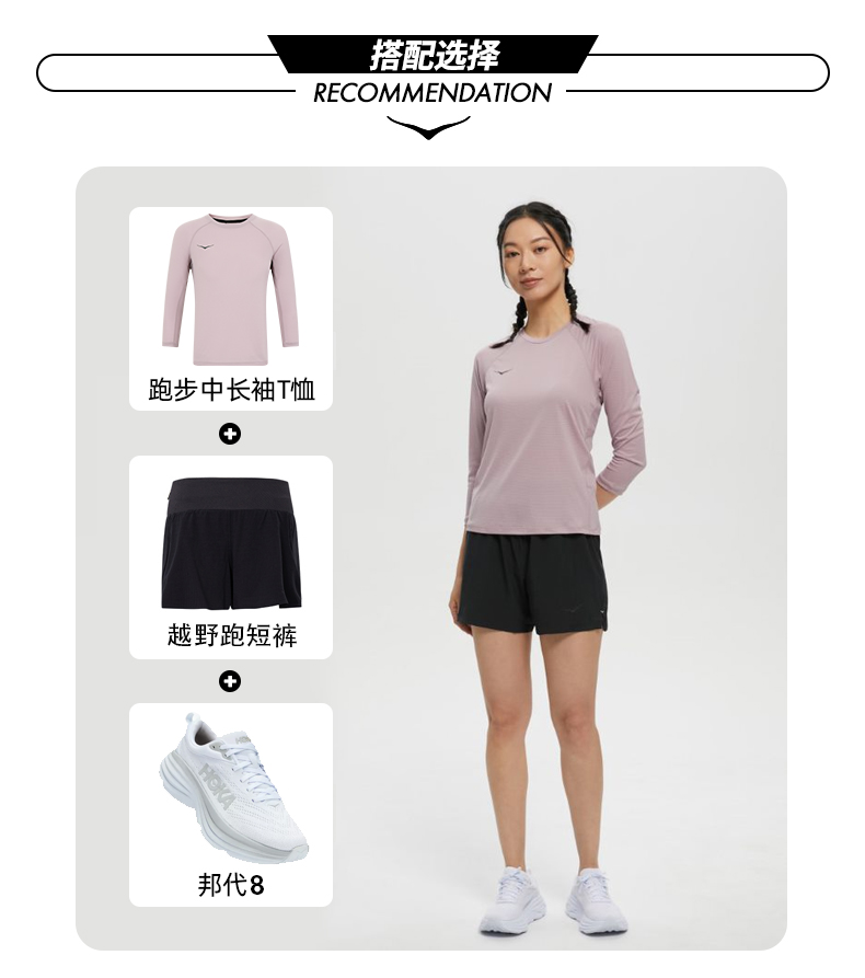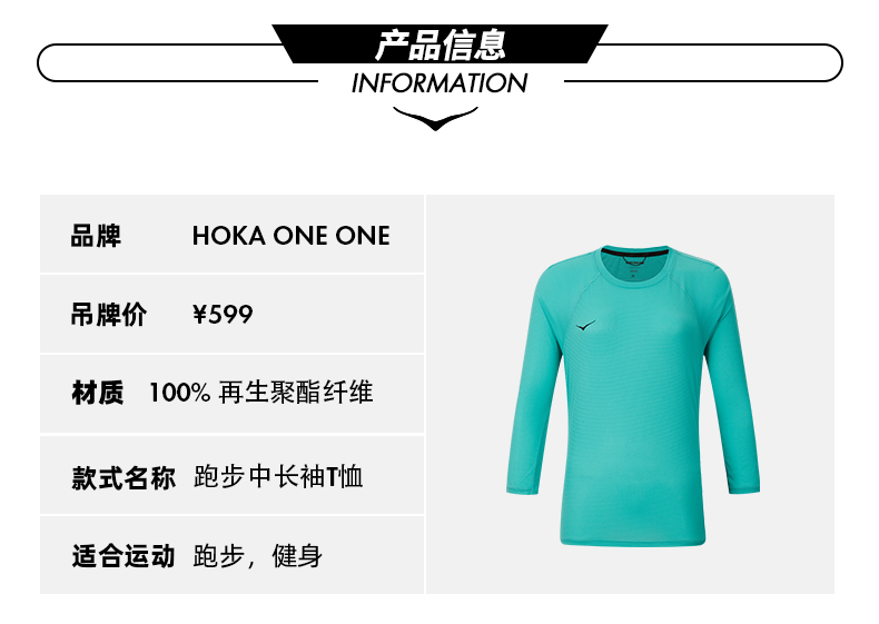 HOKA ONE ONE 女士跑步中长袖T恤Glide 3/4 Sleeve吸汗快干透气