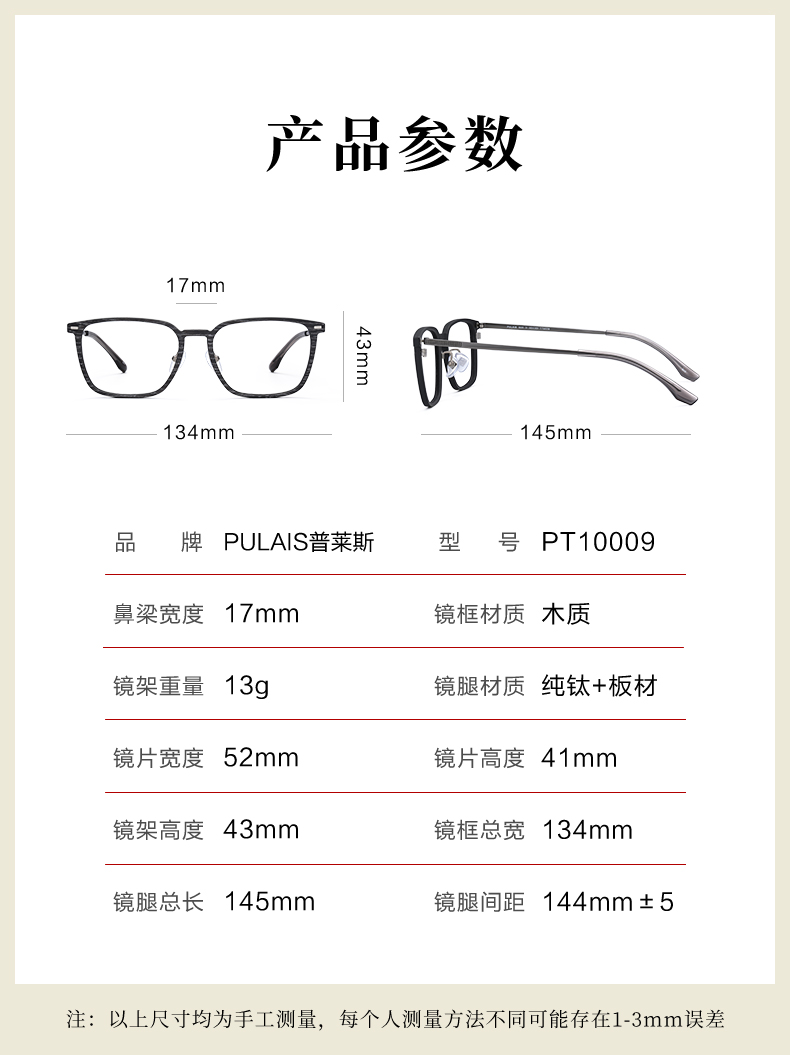 【8.25上新】普莱斯PT10009 木质镜框+纯钛镜腿 男女同款复古小众有个性