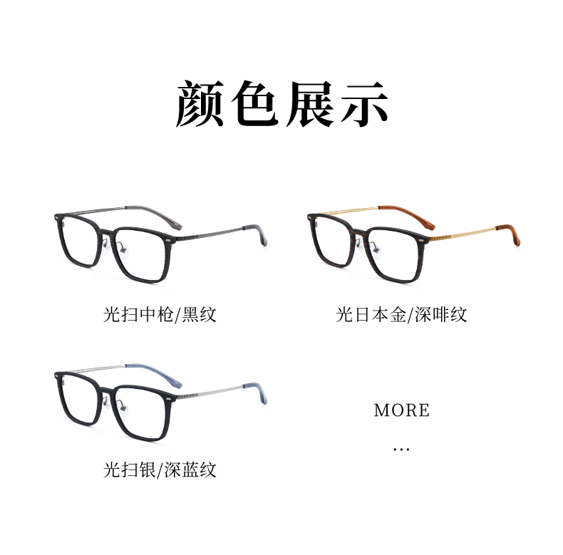 普莱斯光学镜框A6204 经典全框 半钛材质 舒适鼻托 稳固桩头 商务休闲 三色可选