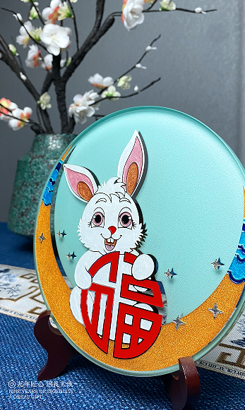 卯兔迎春掐丝玻璃盘子
