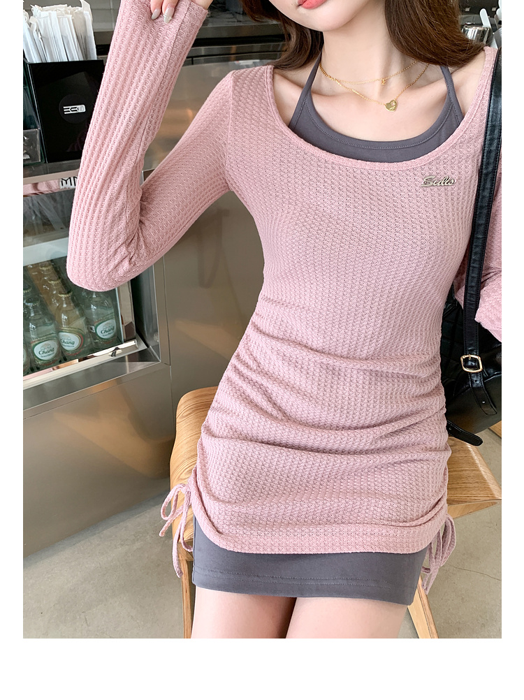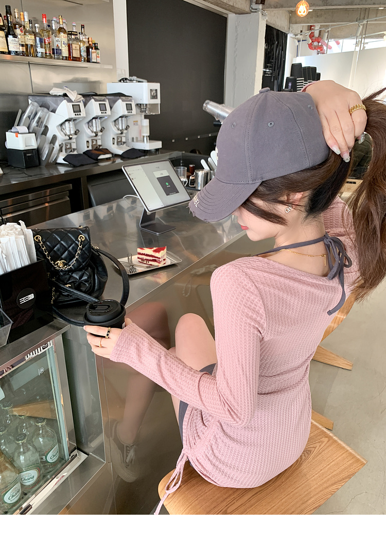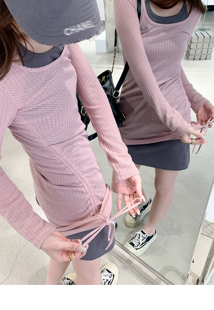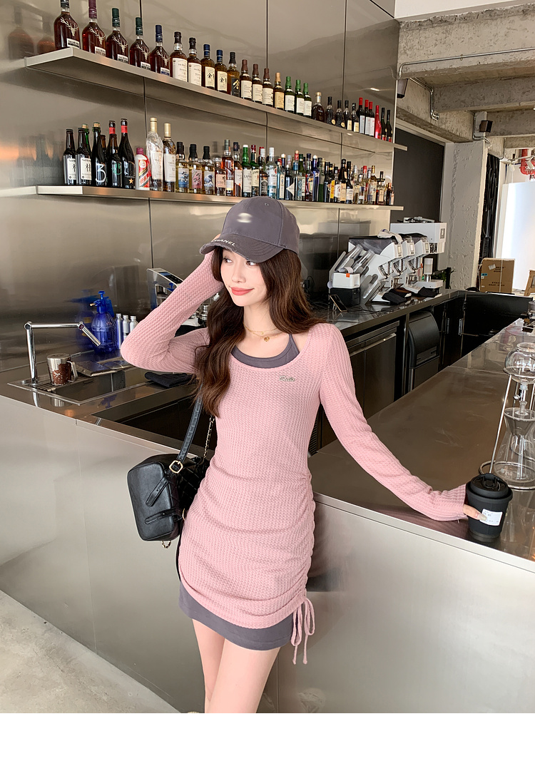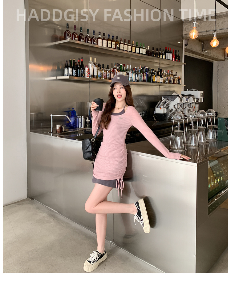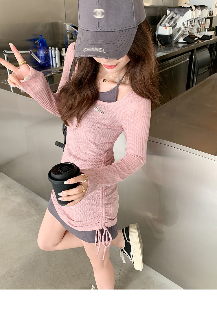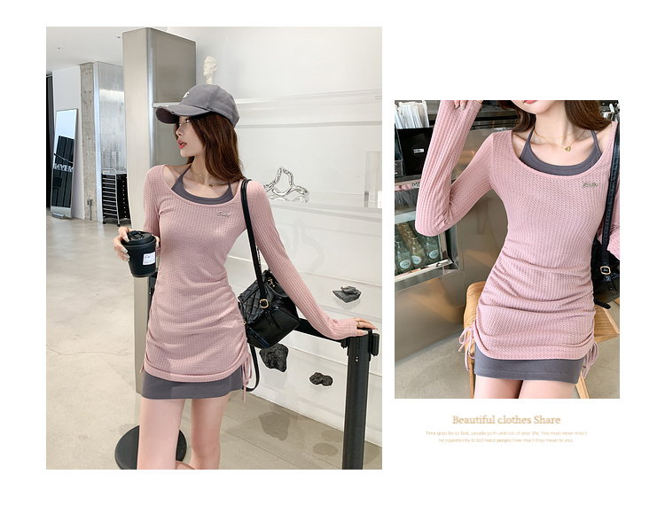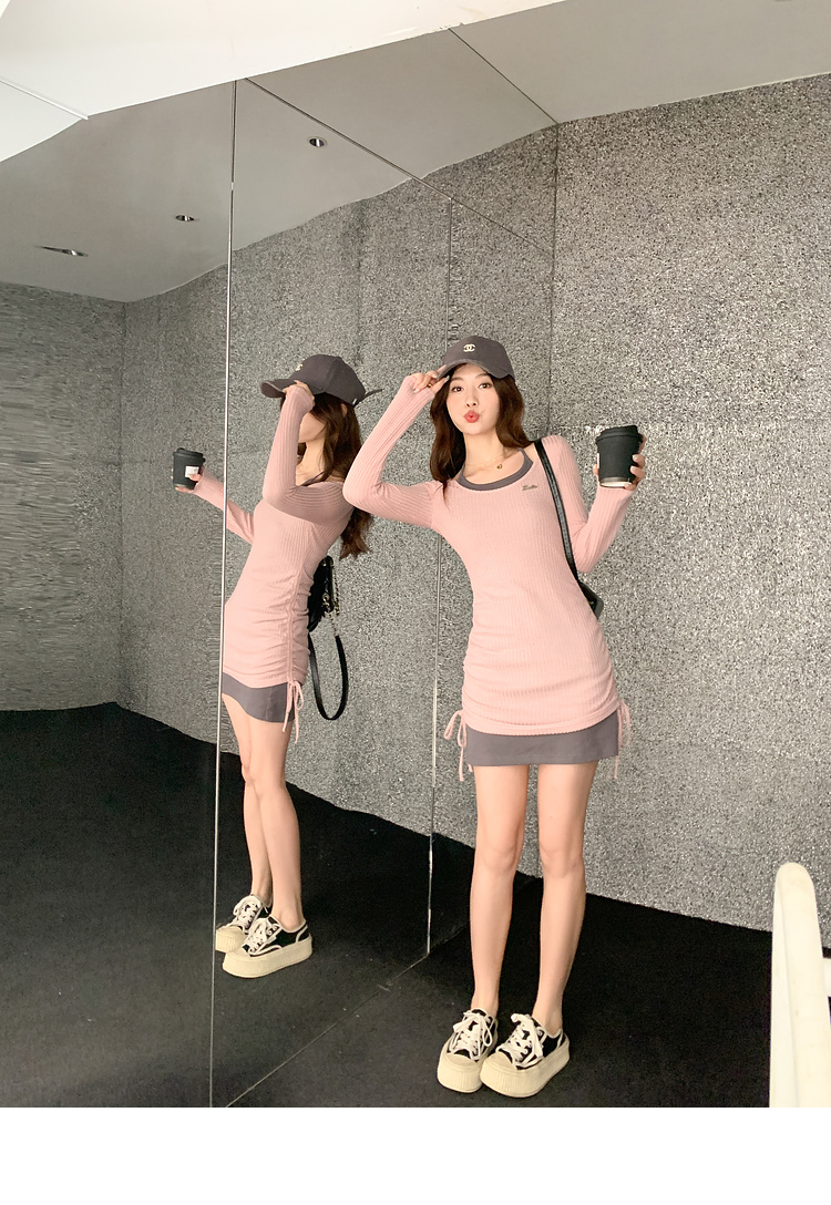 <曾小咸推荐> 【纯欲辣妹】假两件粉灰连衣裙