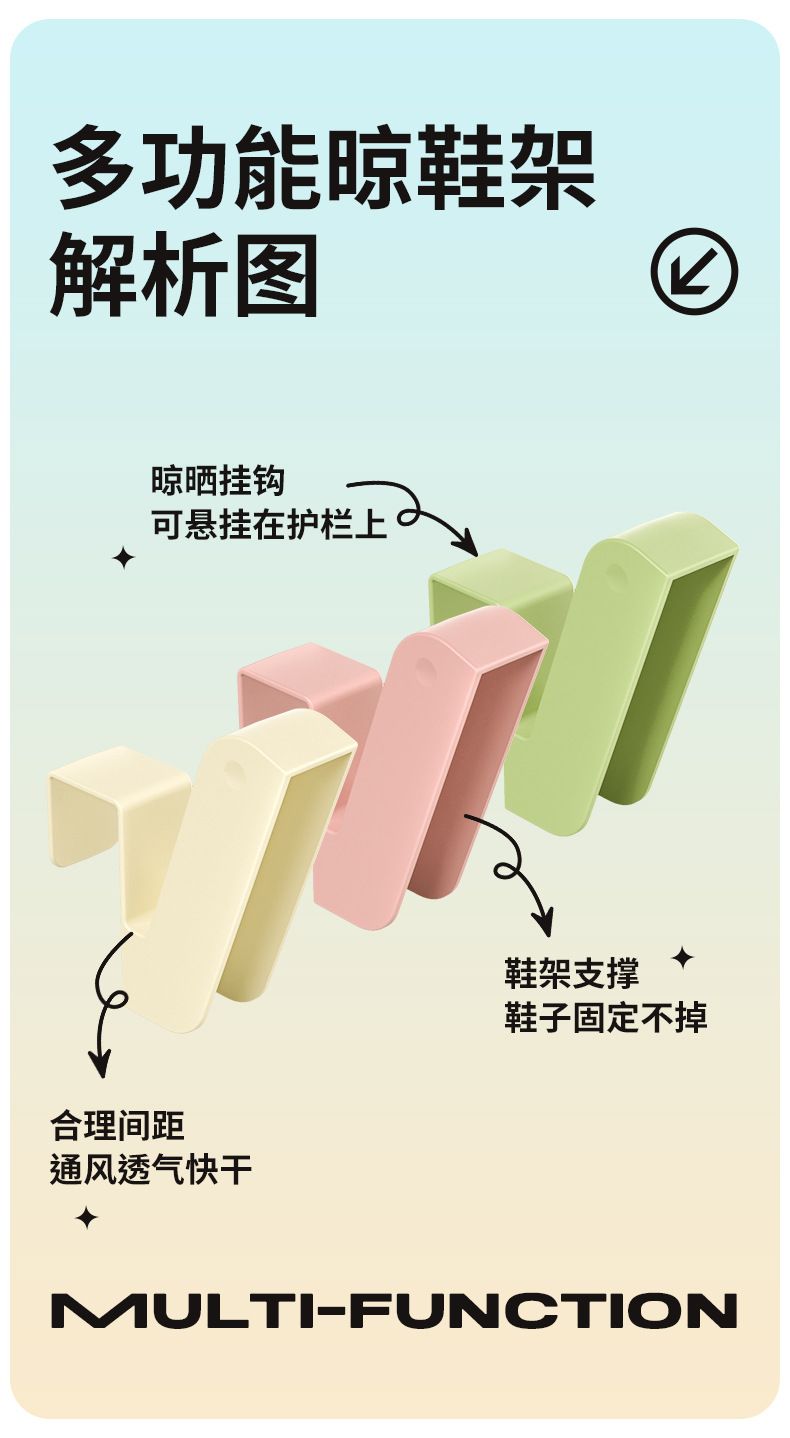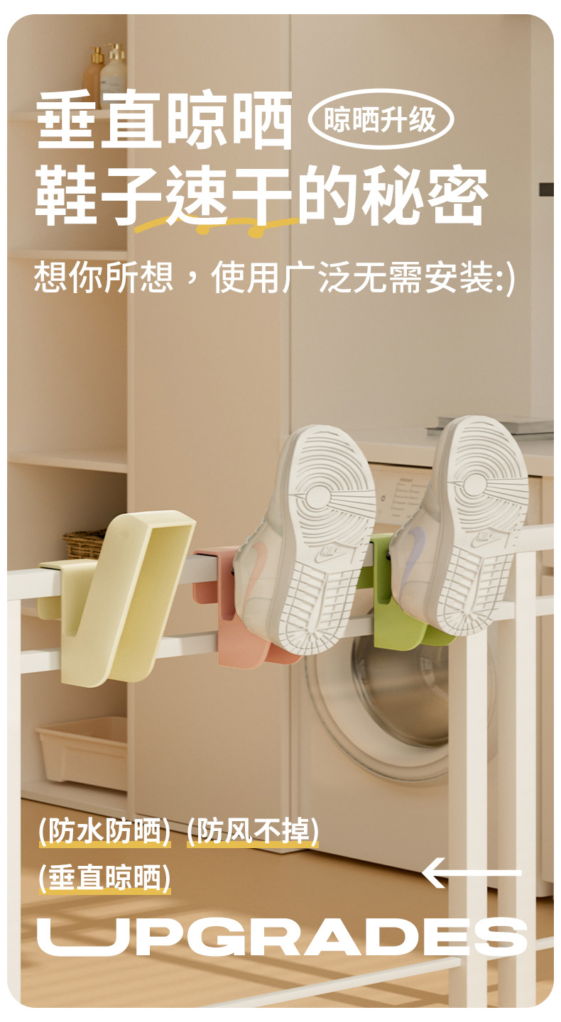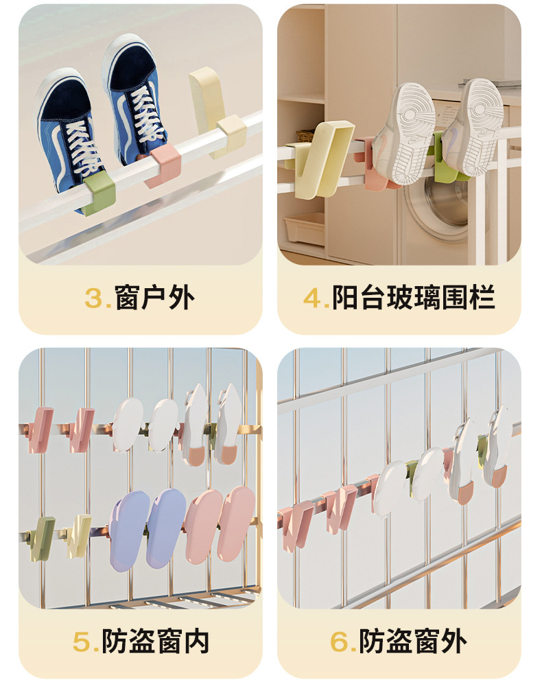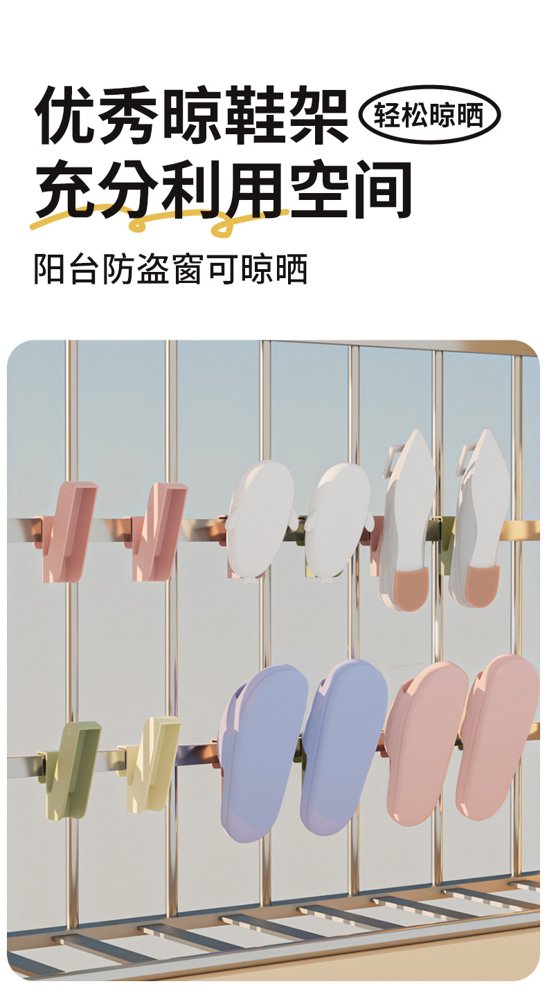 「9.9元包邮!拍2发3」阳台晒鞋架 居家日用防盗窗护栏杆窗外晾衣架窗户窗台室外晾晒收纳整理凉鞋架子