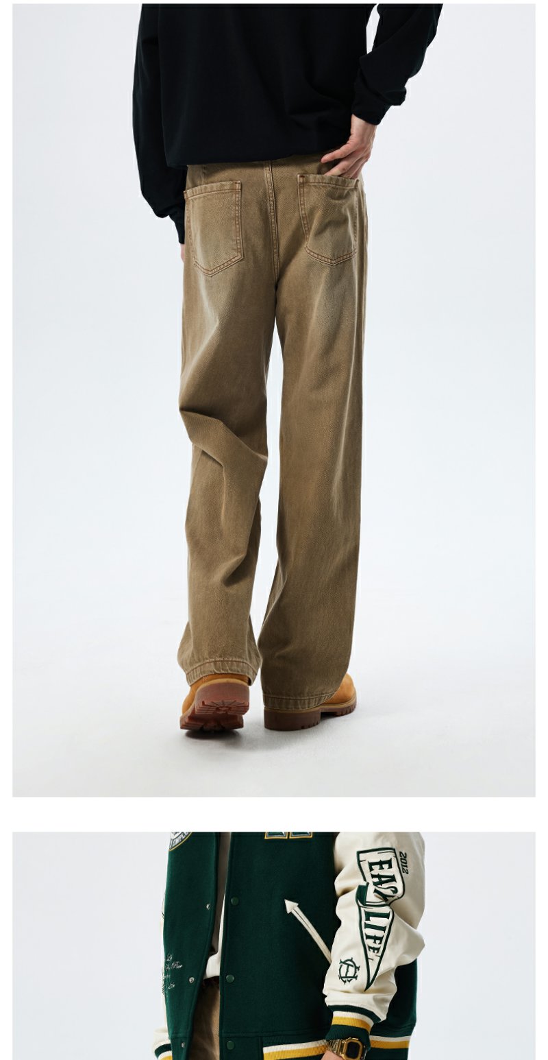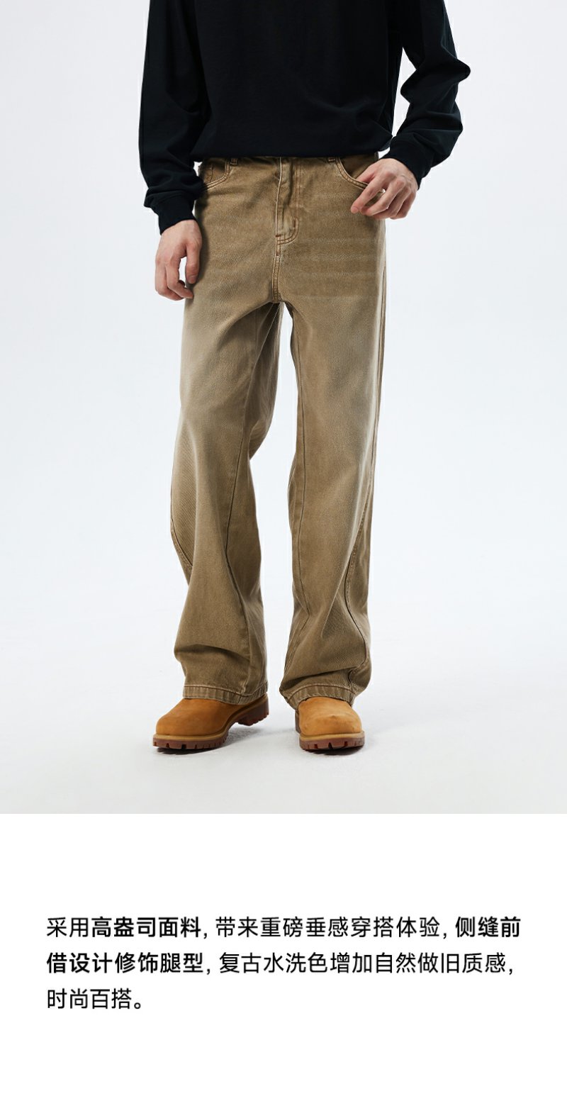 CHINISM赤尘 复古咖牛仔裤男夏季直筒重磅美式水洗休闲裤男士裤子