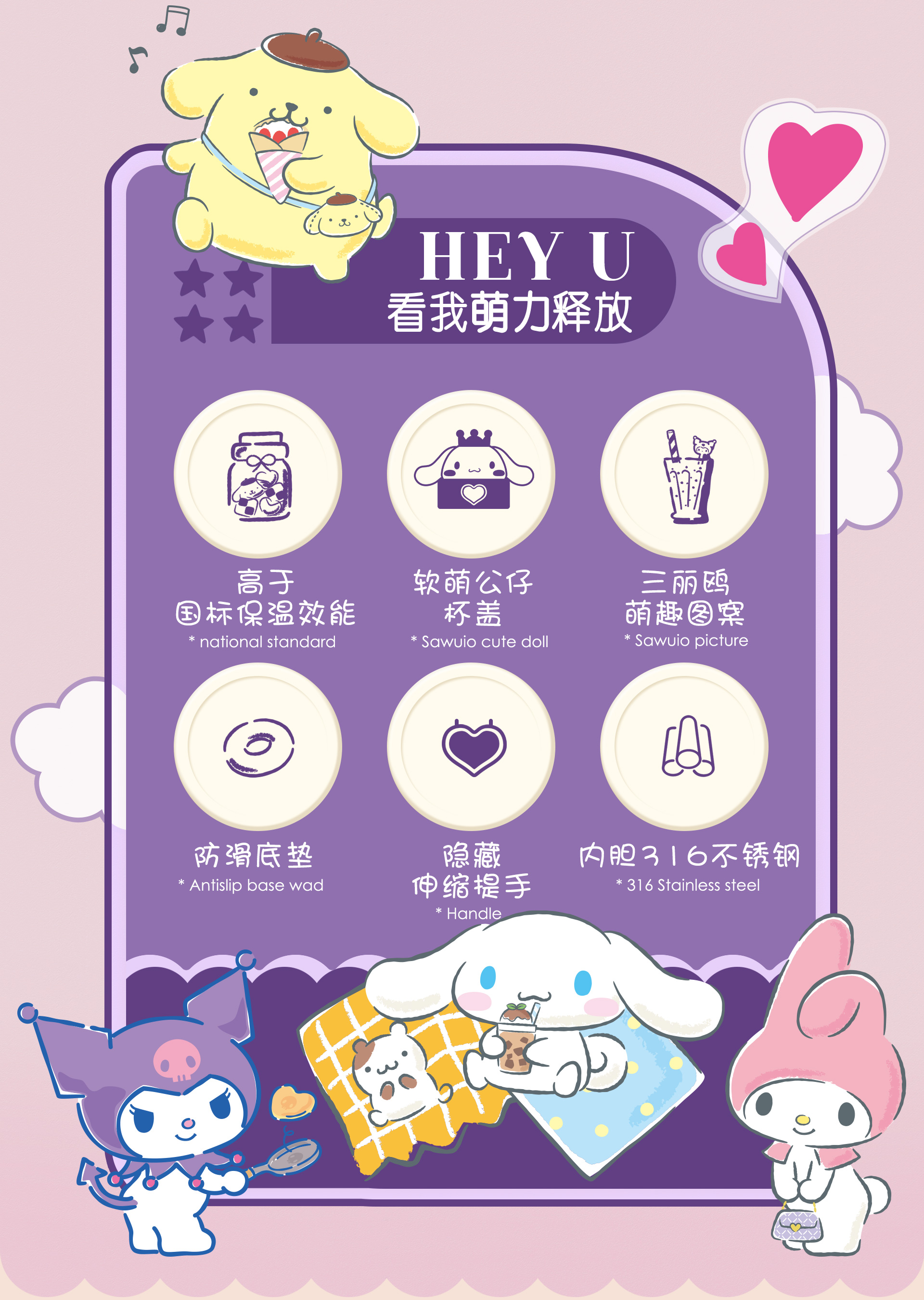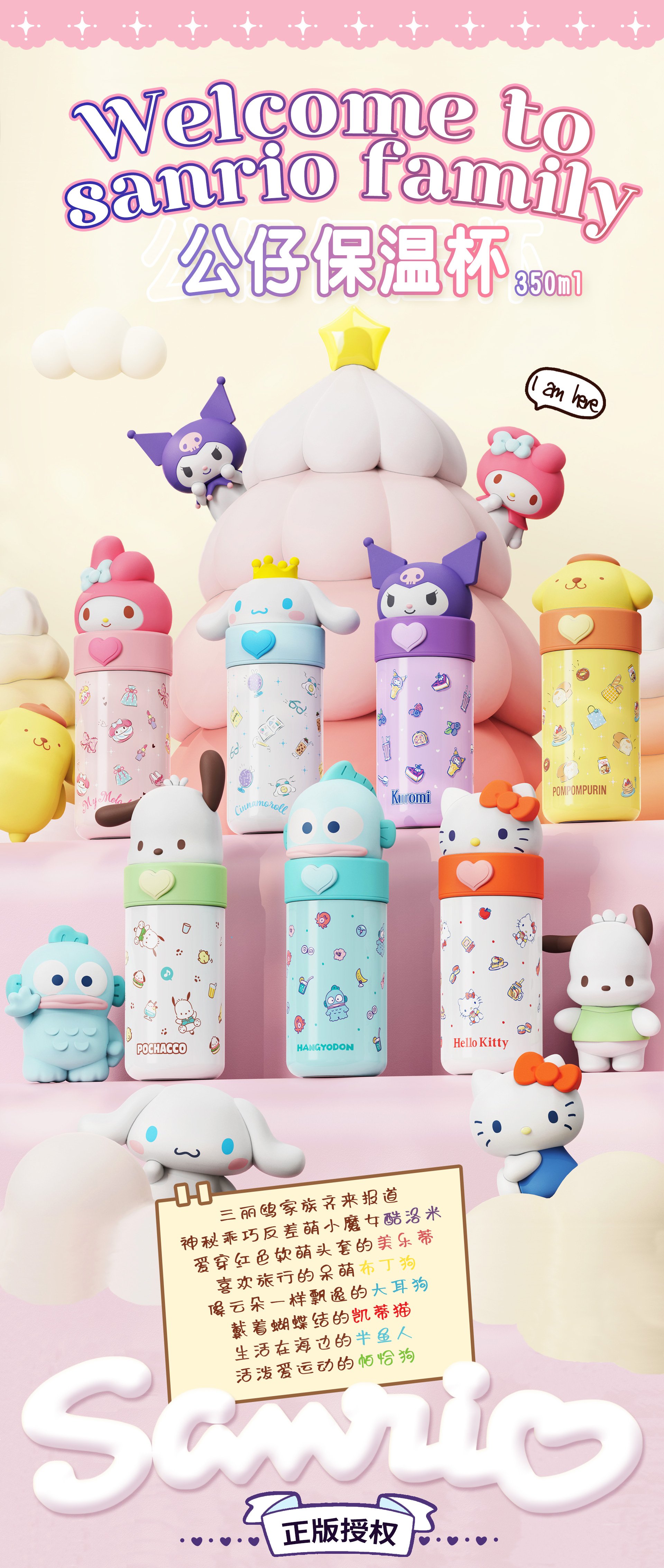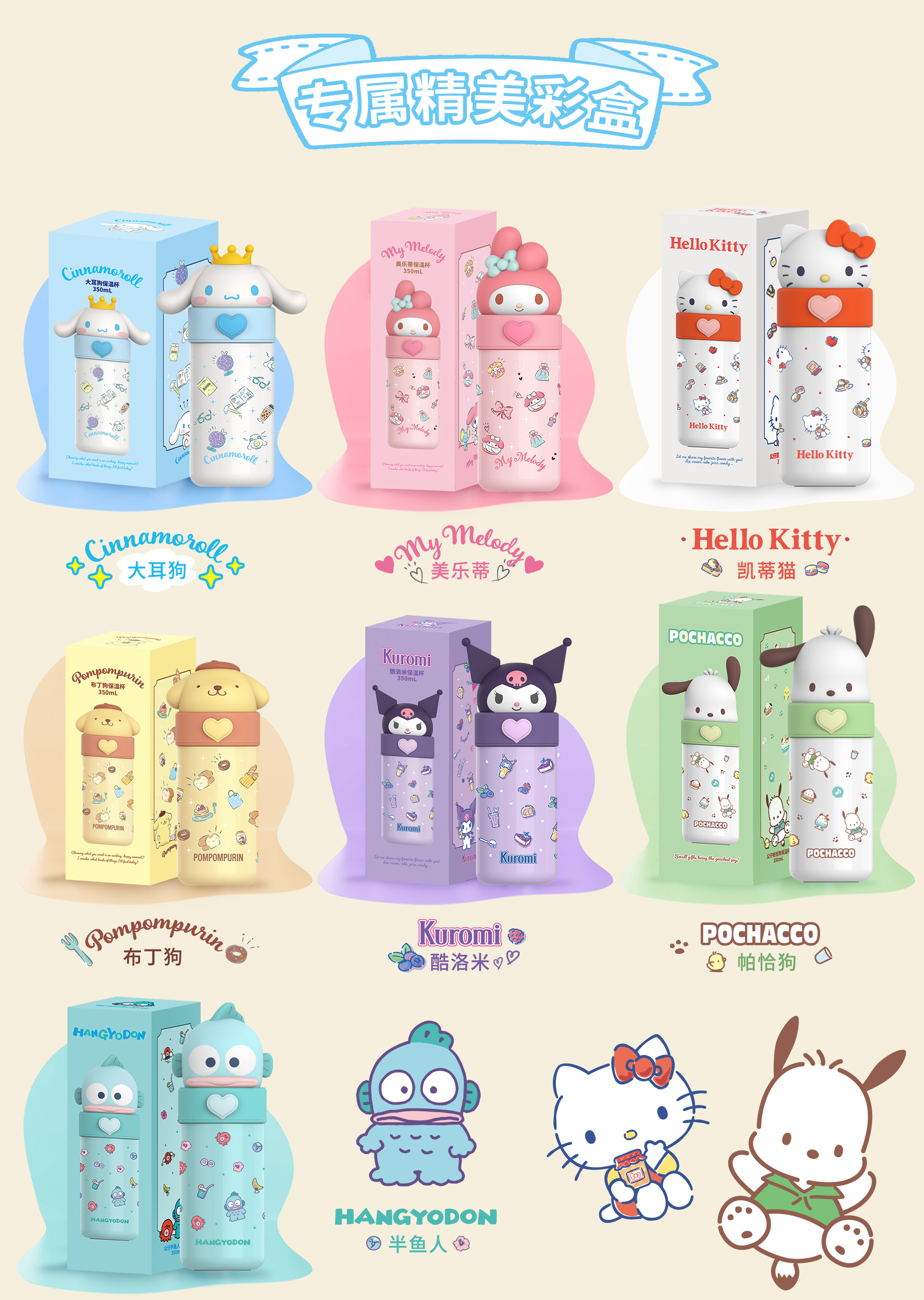 三丽鸥系列保温杯350ml316不锈钢保温杯便携式水杯萌