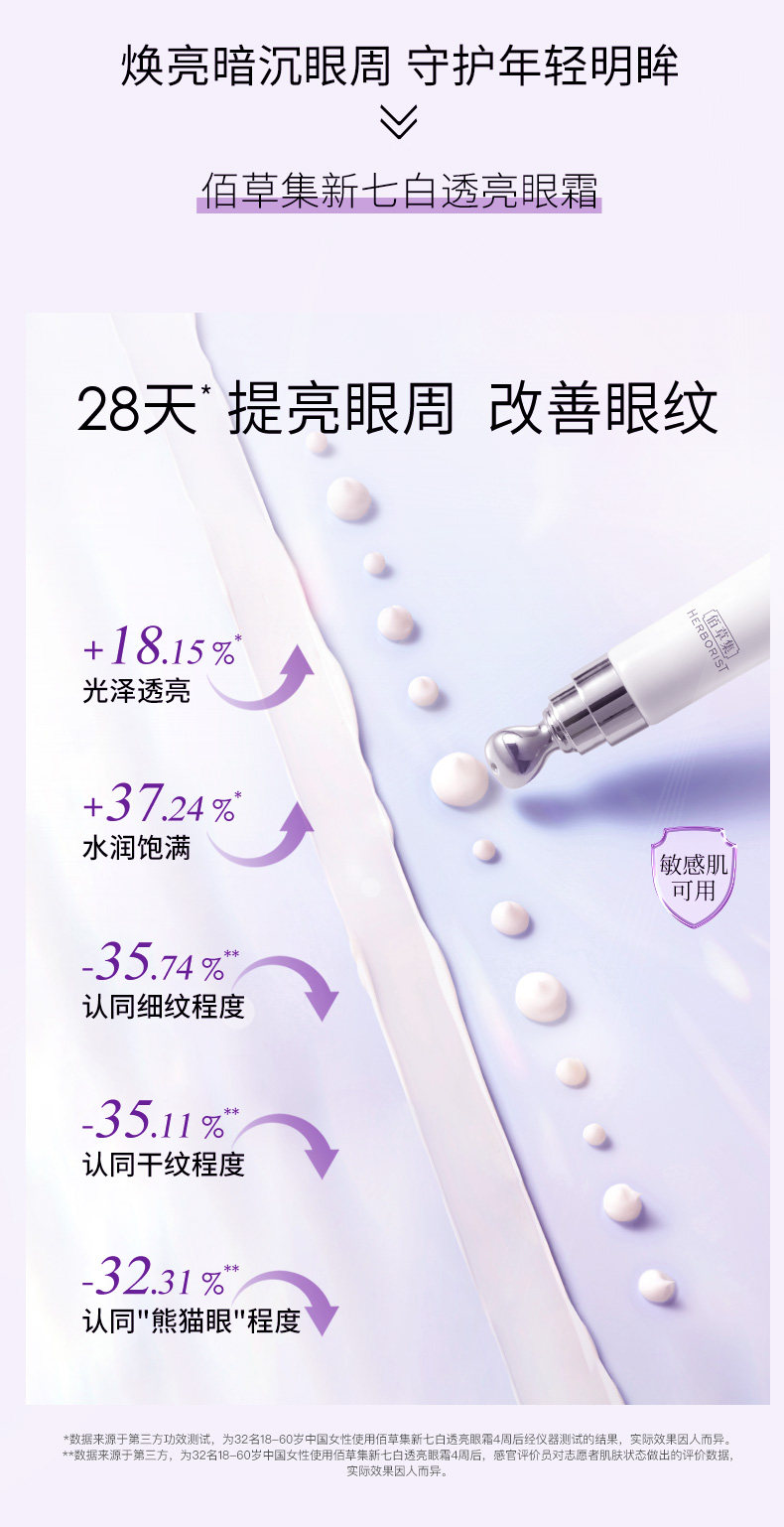 【眼周护理】佰草集新七白透亮眼霜15g 抗皱紧致保湿