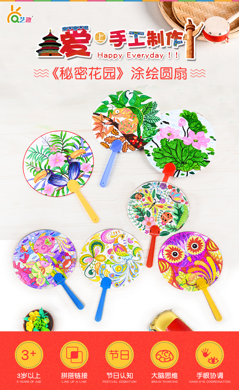 2.秘密花园涂色扇子随机发 1 感受为春天涂色的美好