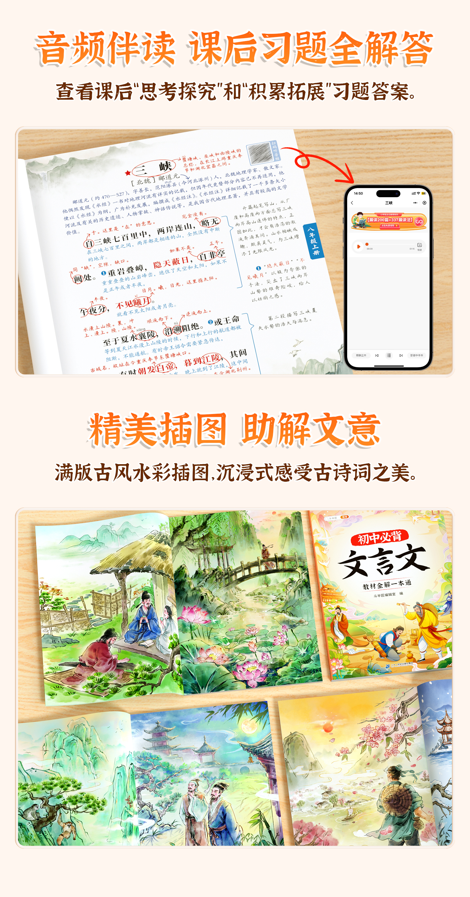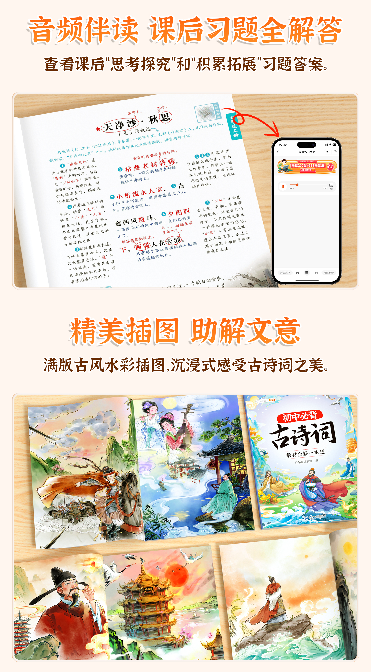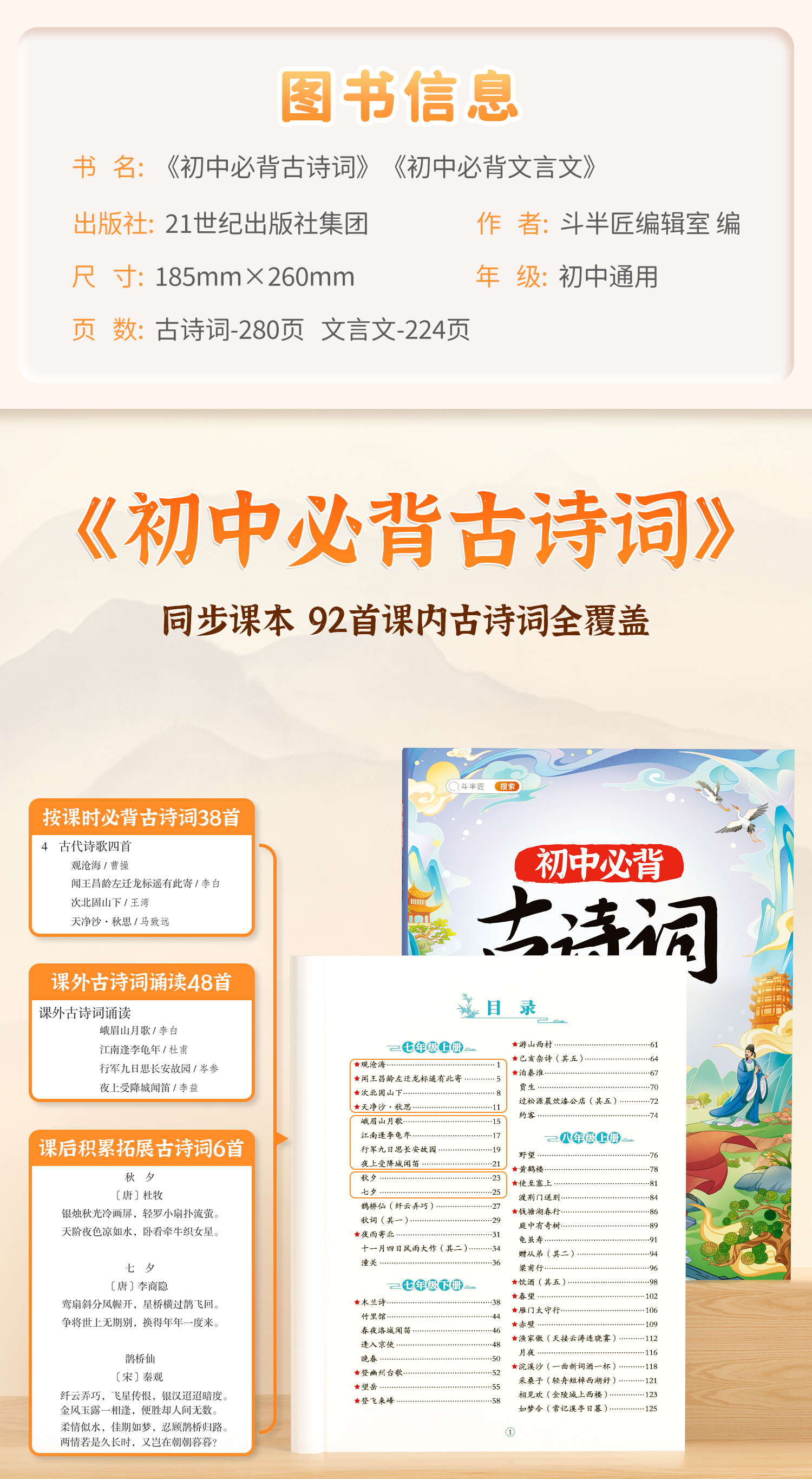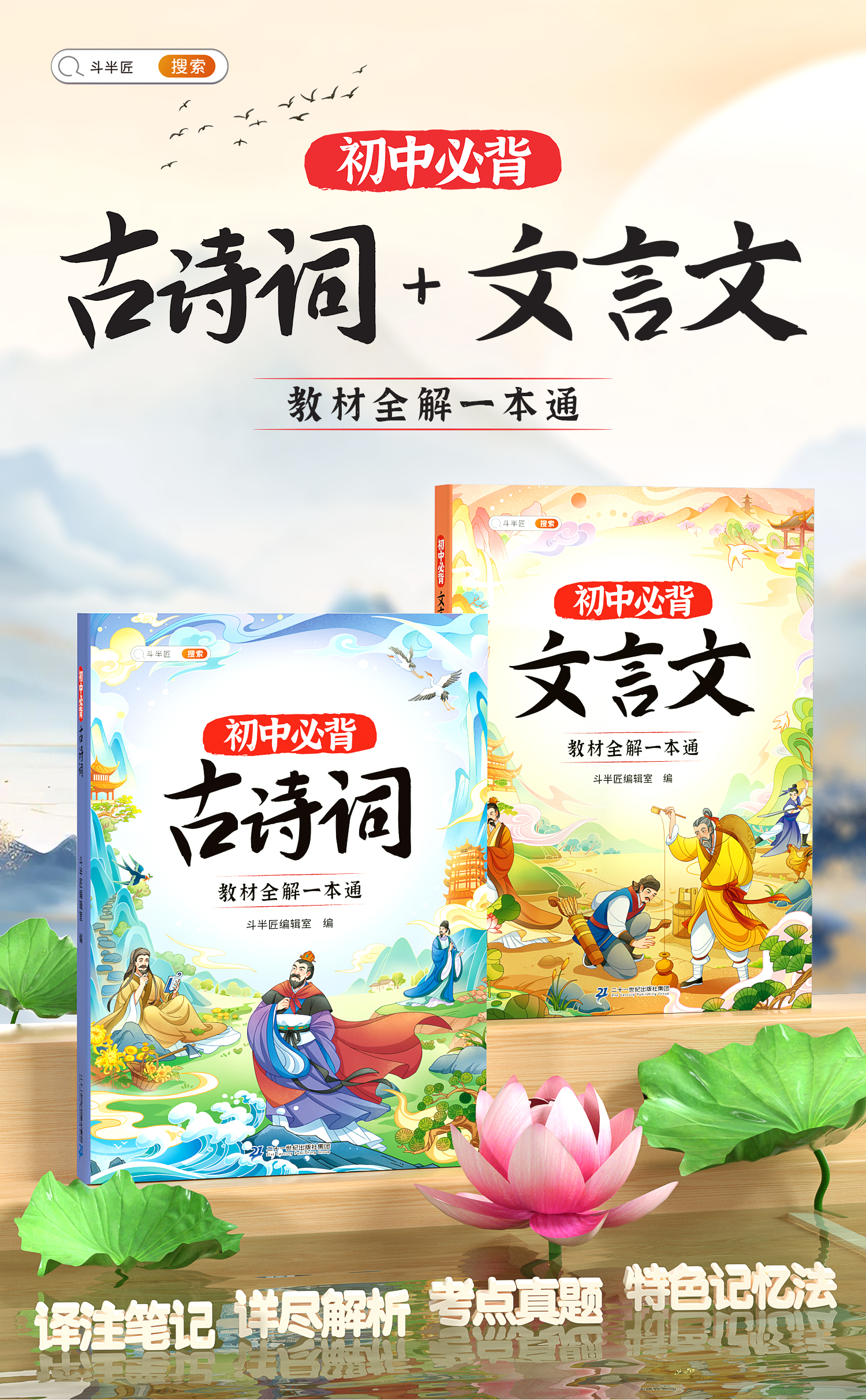 【斗半匠】初中必背古诗词和文言文人教版全解一本通