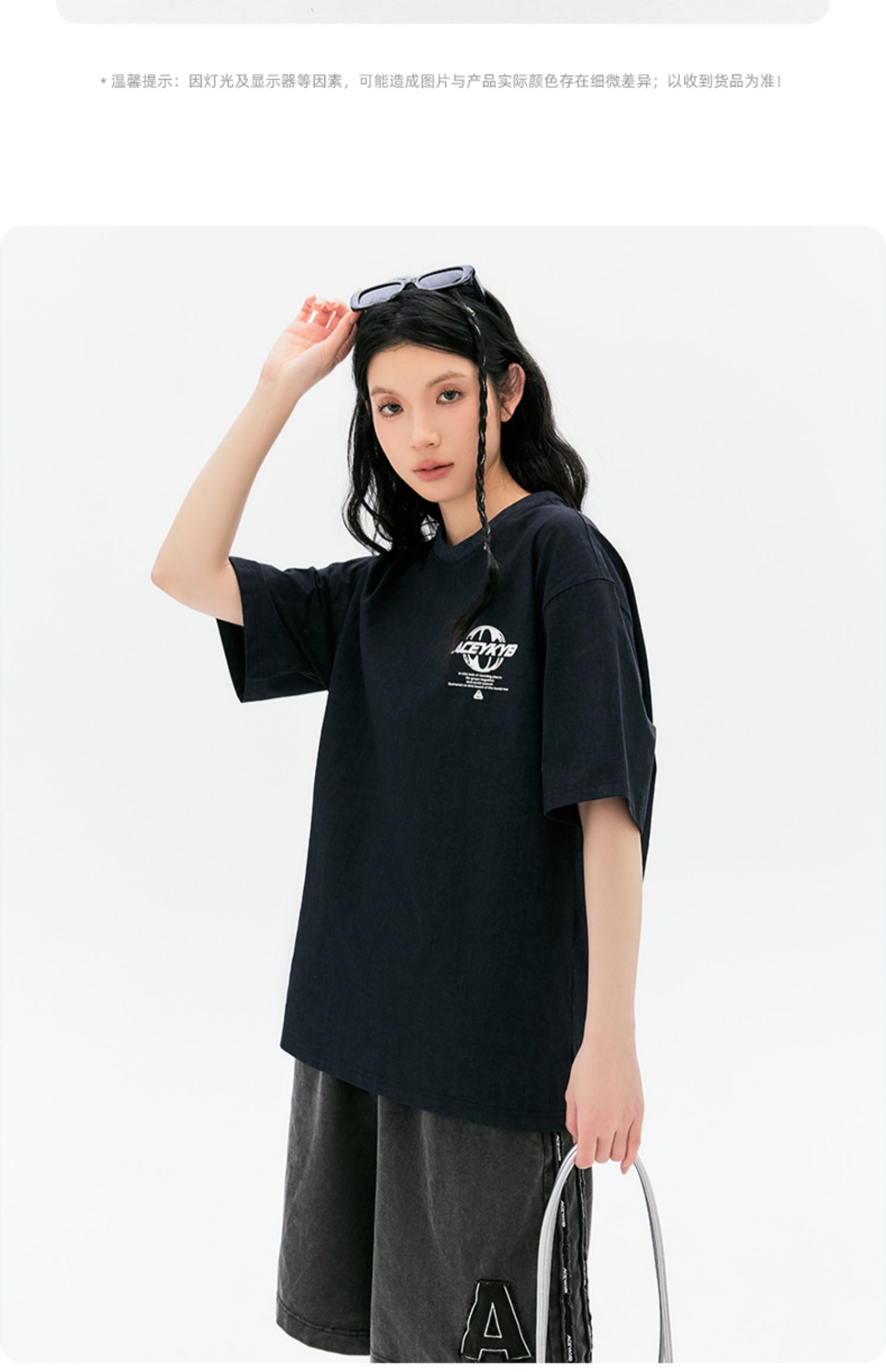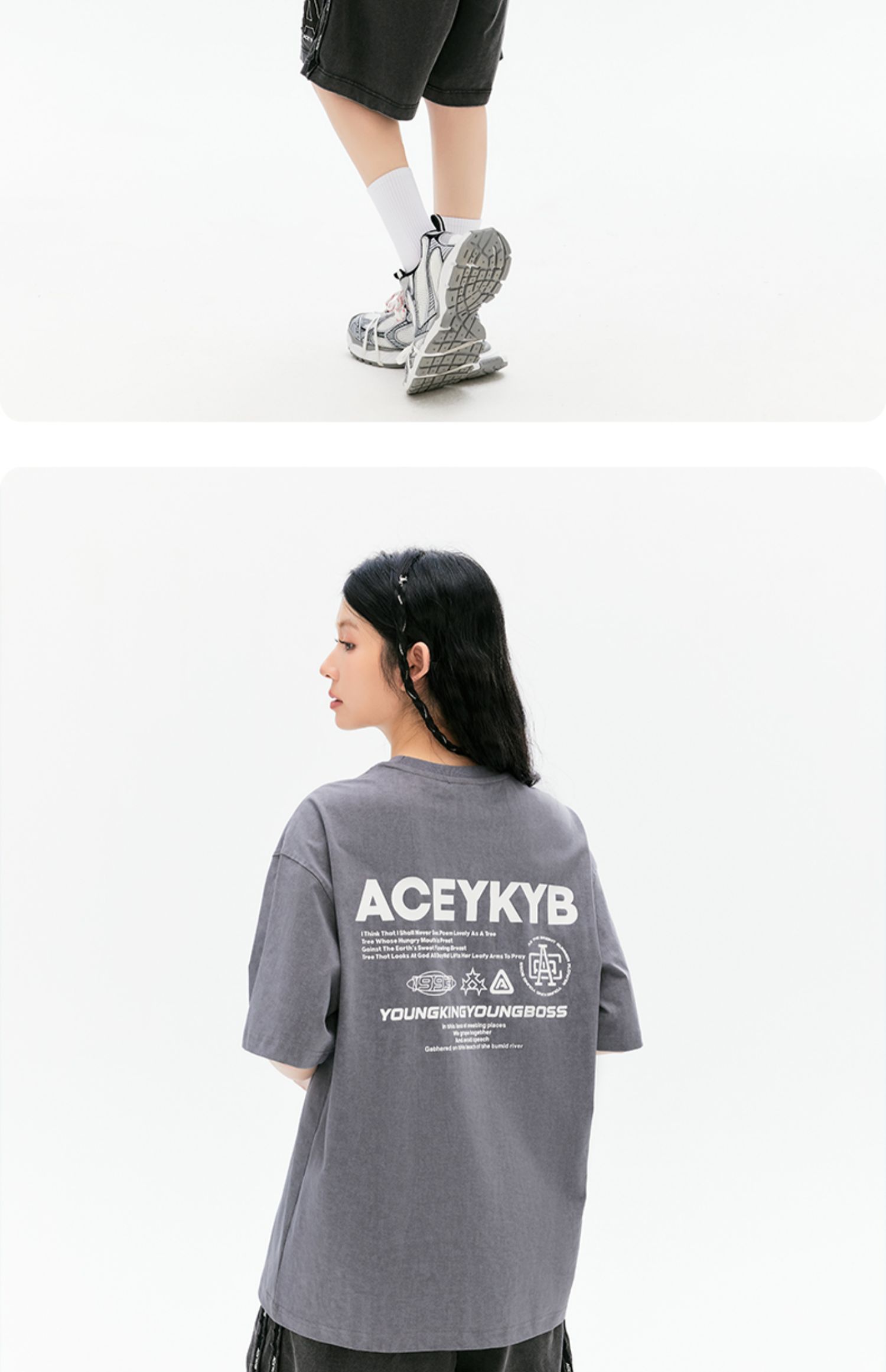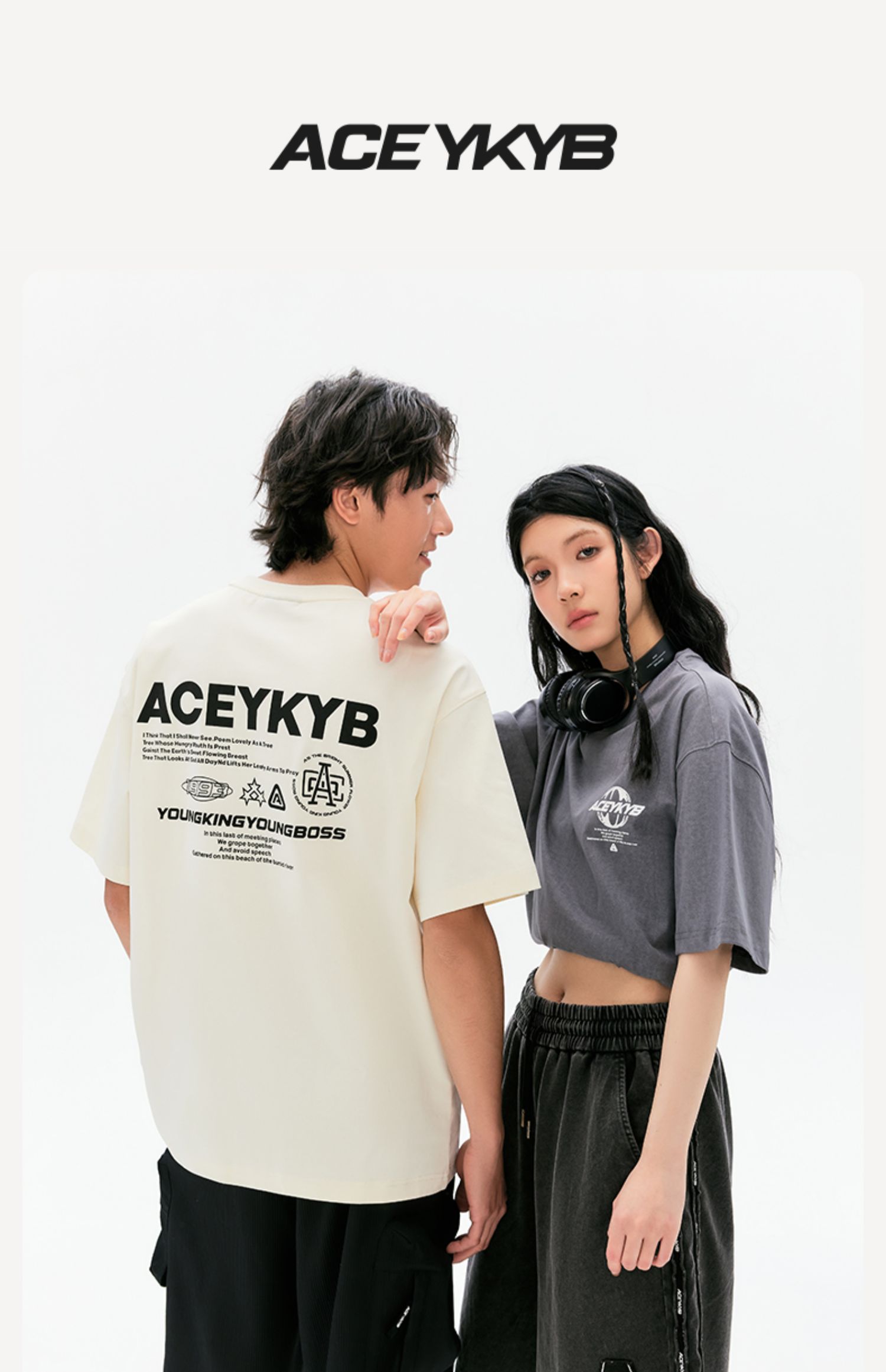 YKYB印花短袖潮流水洗高街tee中性2025夏新款半袖美式复古宽松t恤