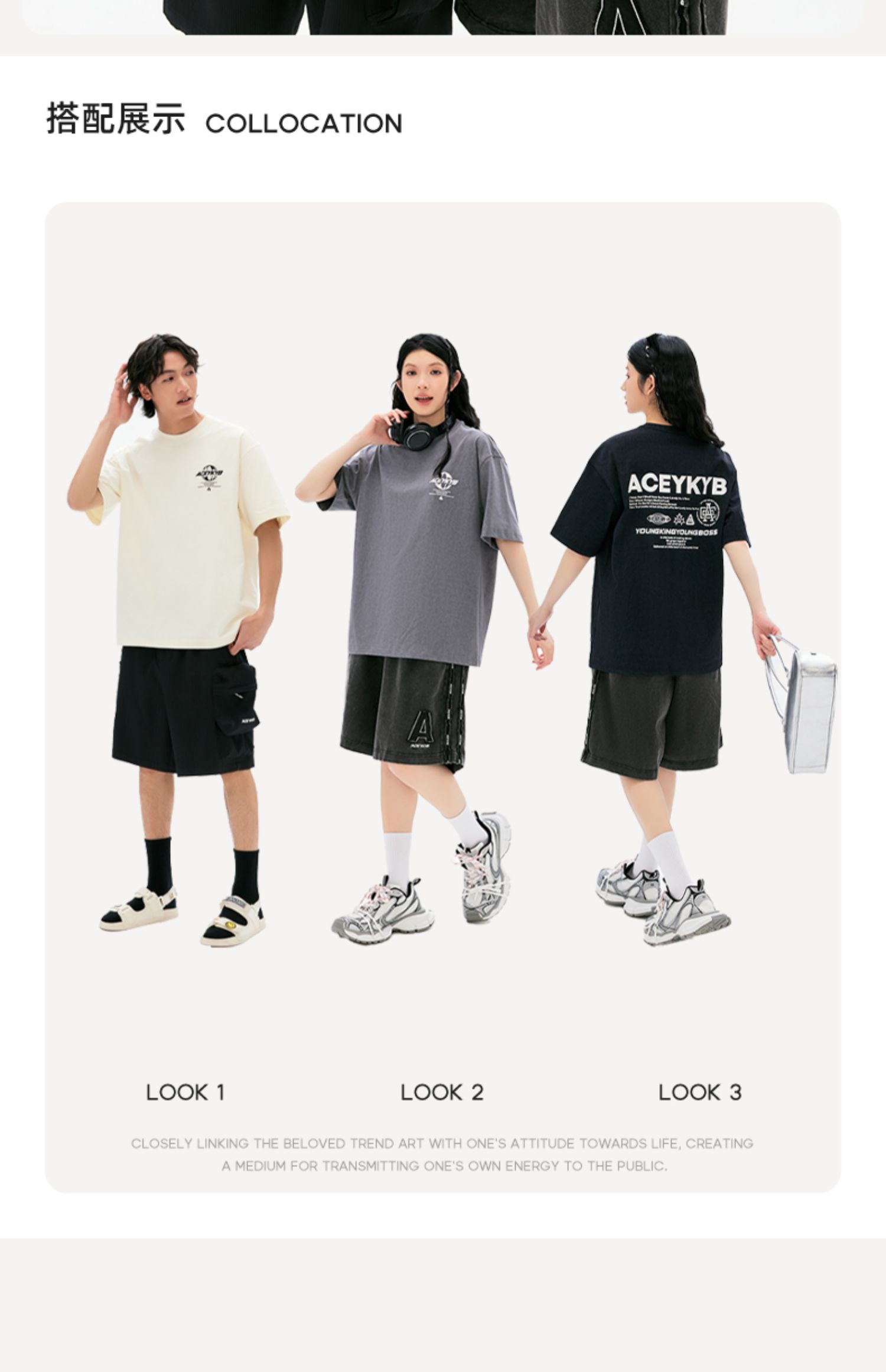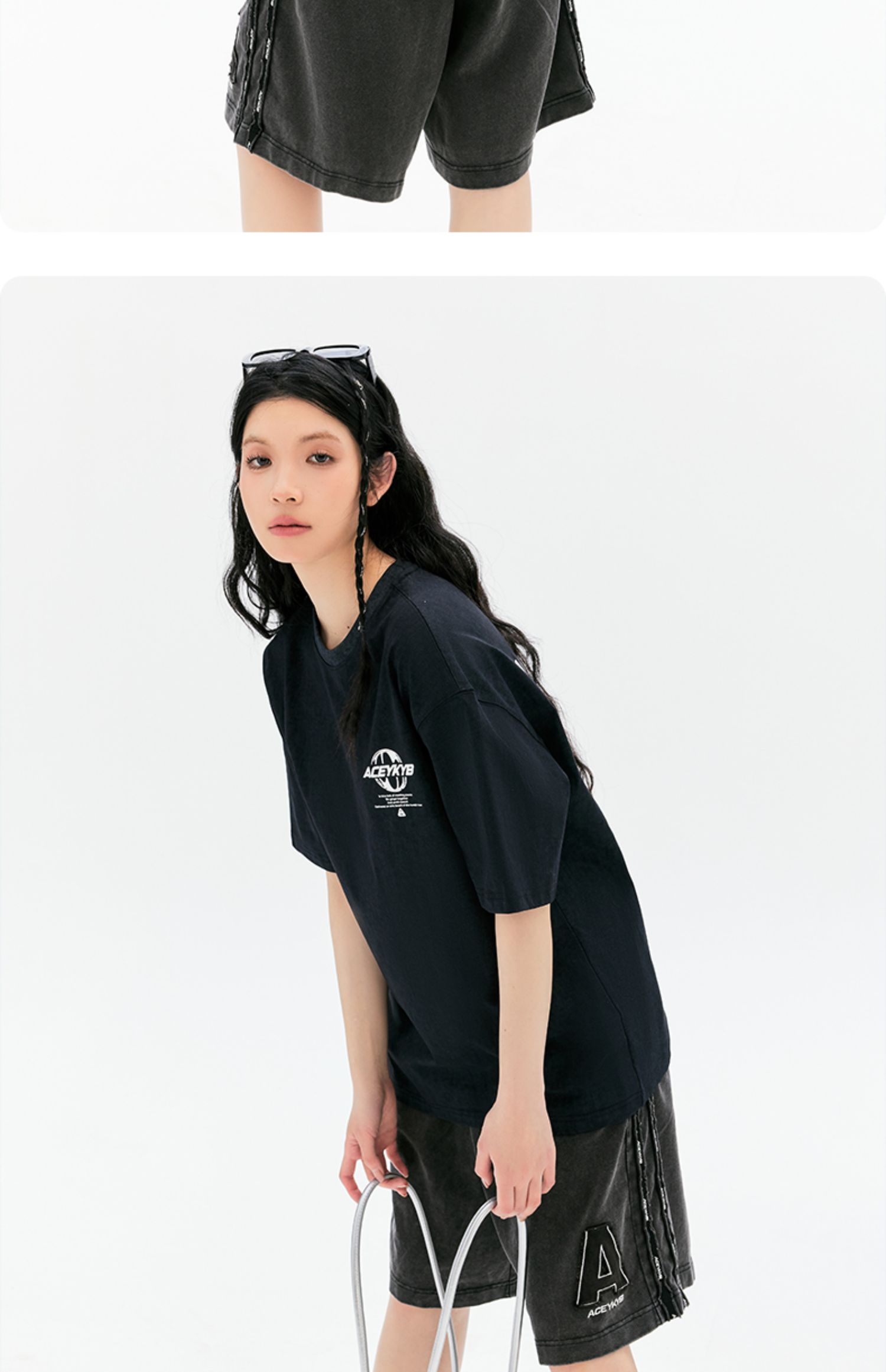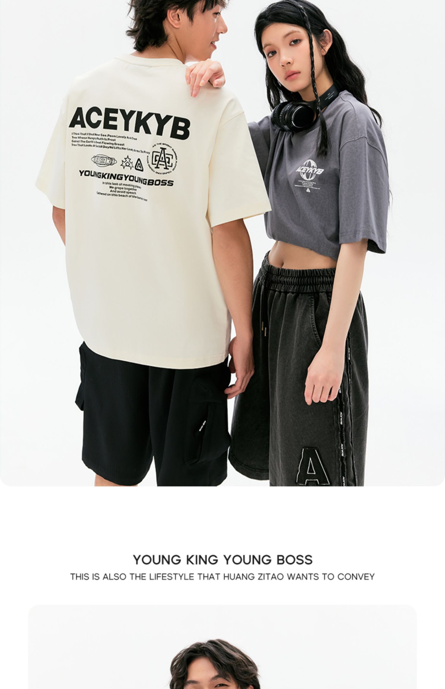 YKYB印花短袖潮流水洗高街tee中性2025夏新款半袖美式复古宽松t恤