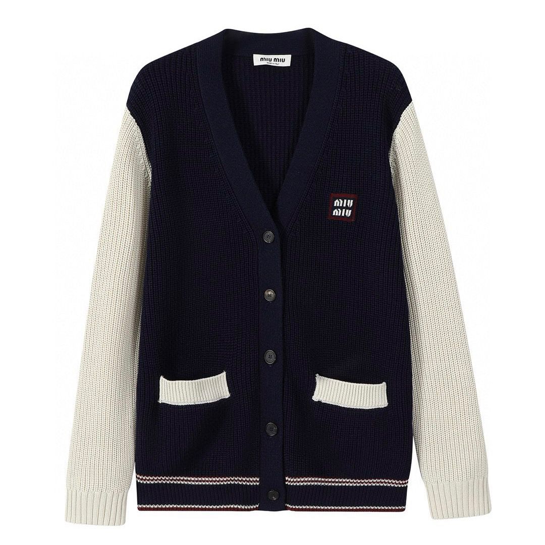 Miumiu拼色羊毛羊绒混纺开衫定制辅料