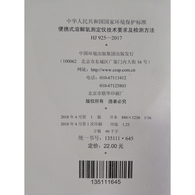 HJ 925—2017便携式溶解氧测定仪技术要求及检测方法 国家标准GB 环境保护 环境科学 135111645