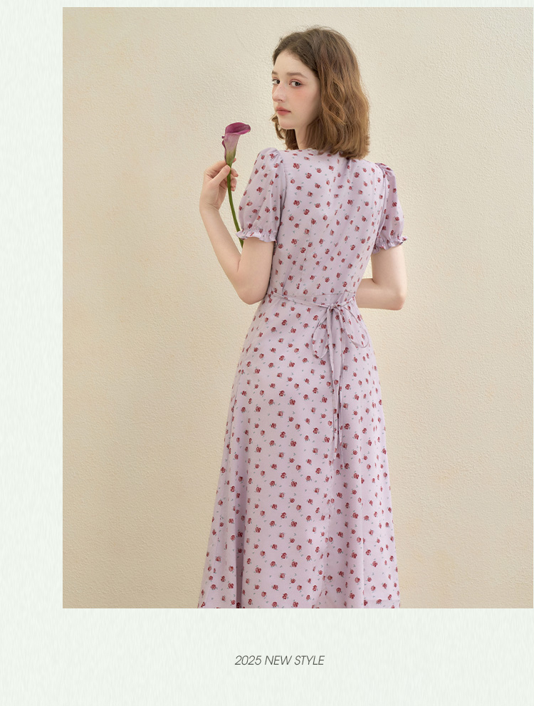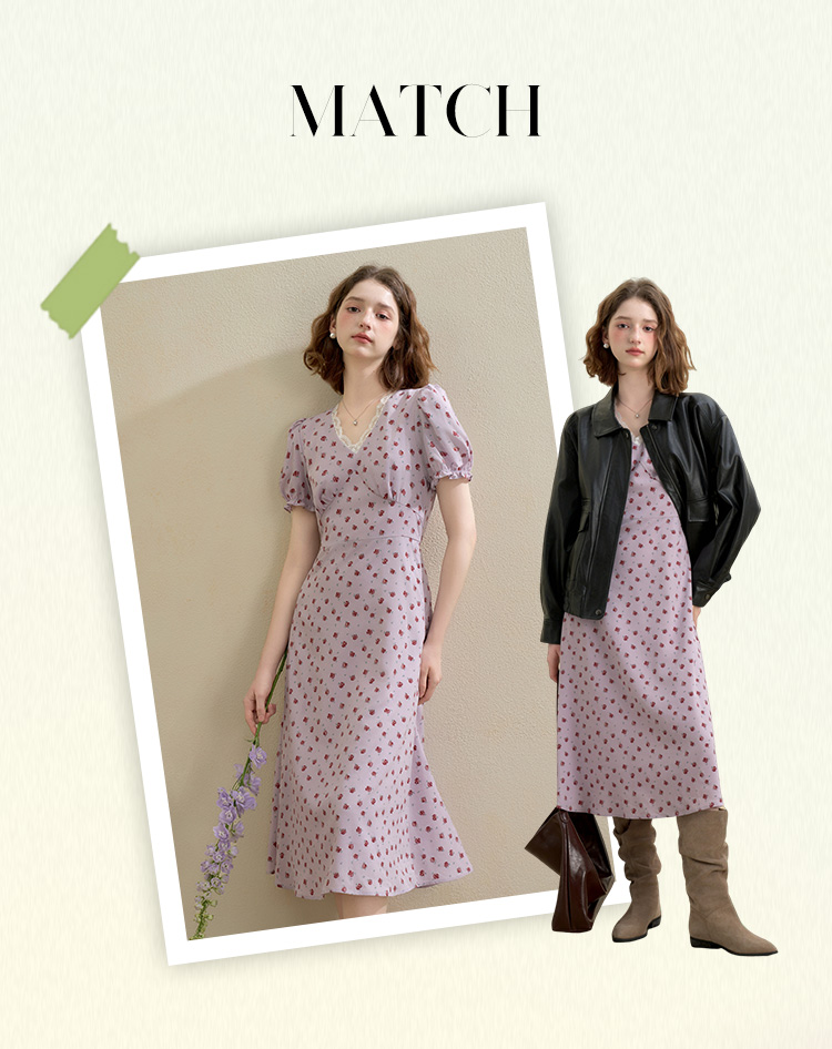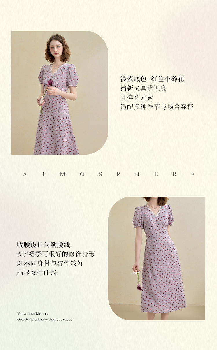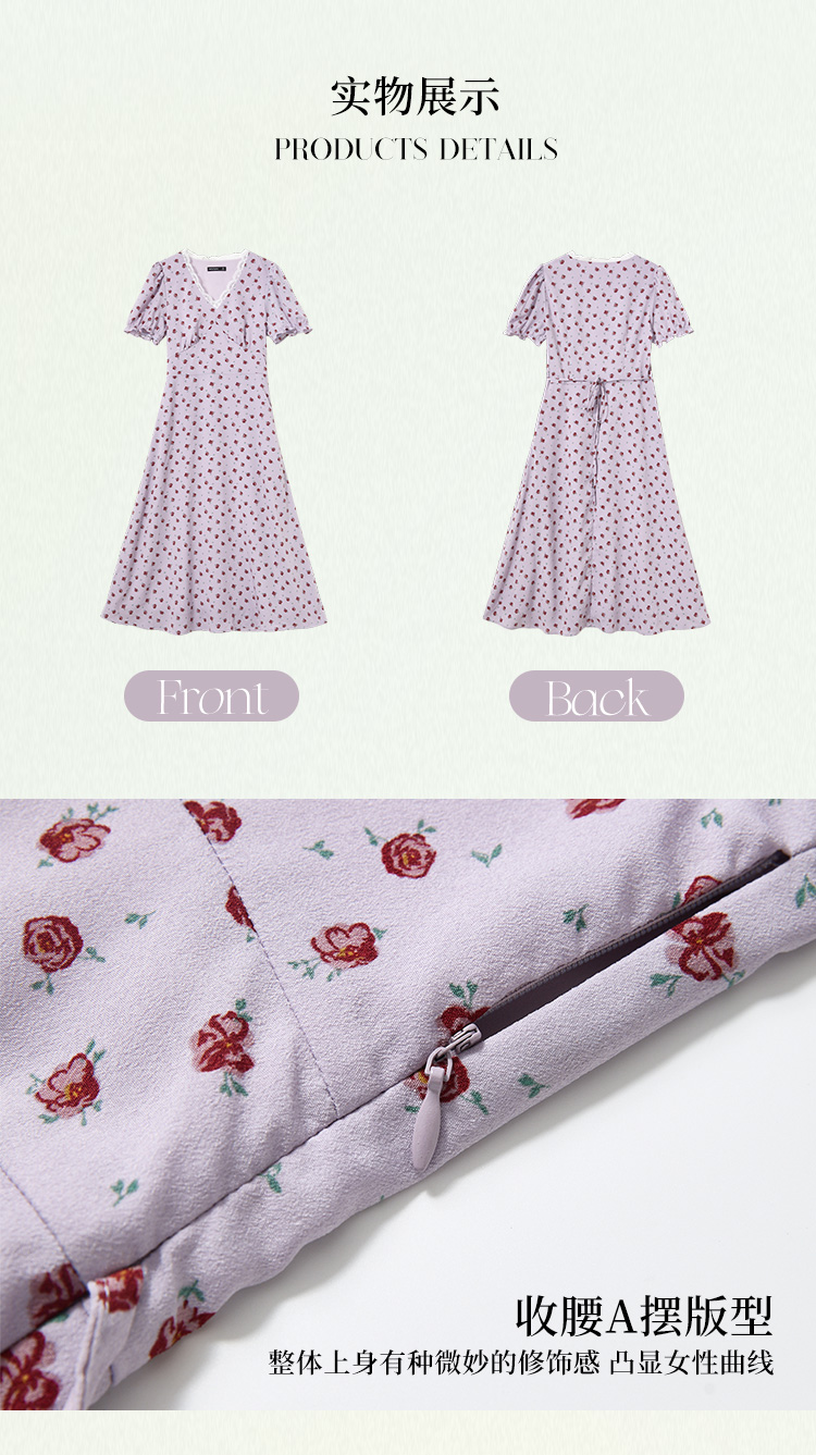 【限时秒杀】西遇浪漫玫瑰蕾丝花边V领碎花连衣裙女秋季新款收腰显瘦长裙V2451096