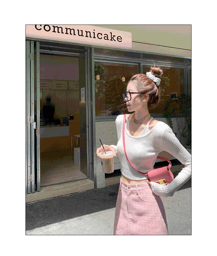 <曾小咸推荐>初秋小心机绑带挂脖设计感短款上衣