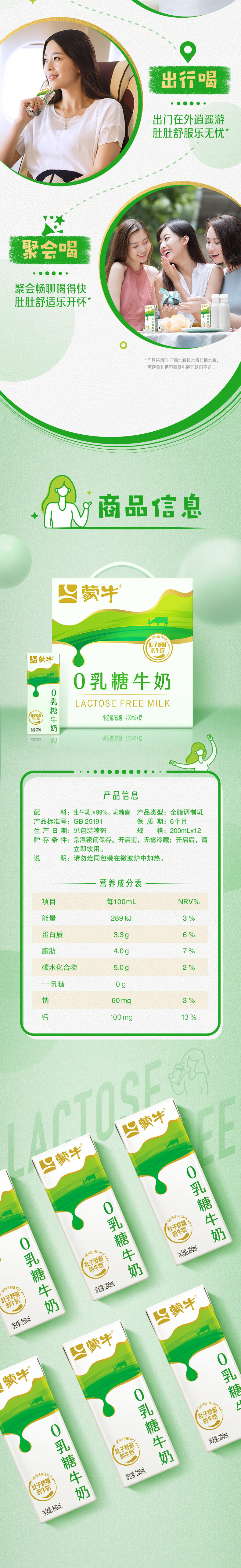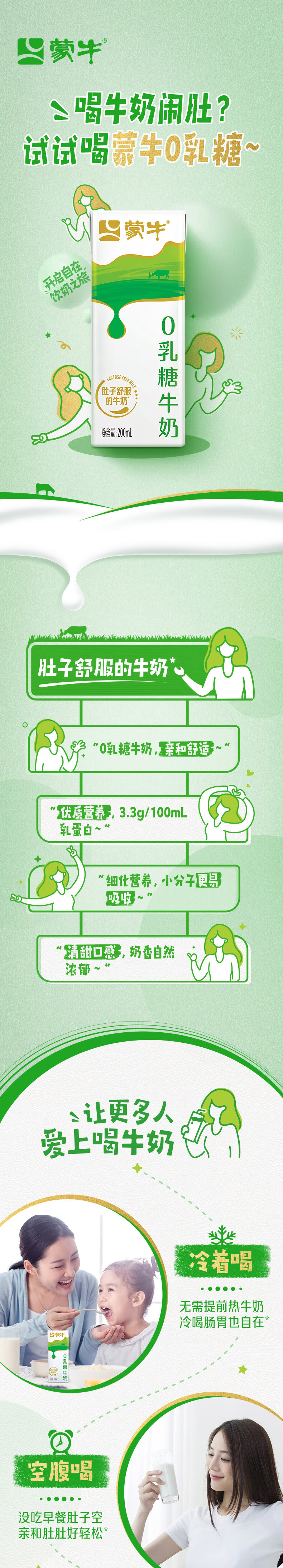 蒙牛0乳糖牛奶全脂调制乳利乐苗条装200ml*12包