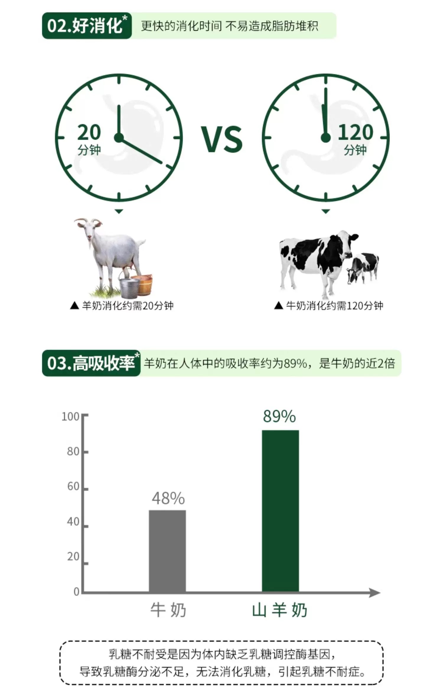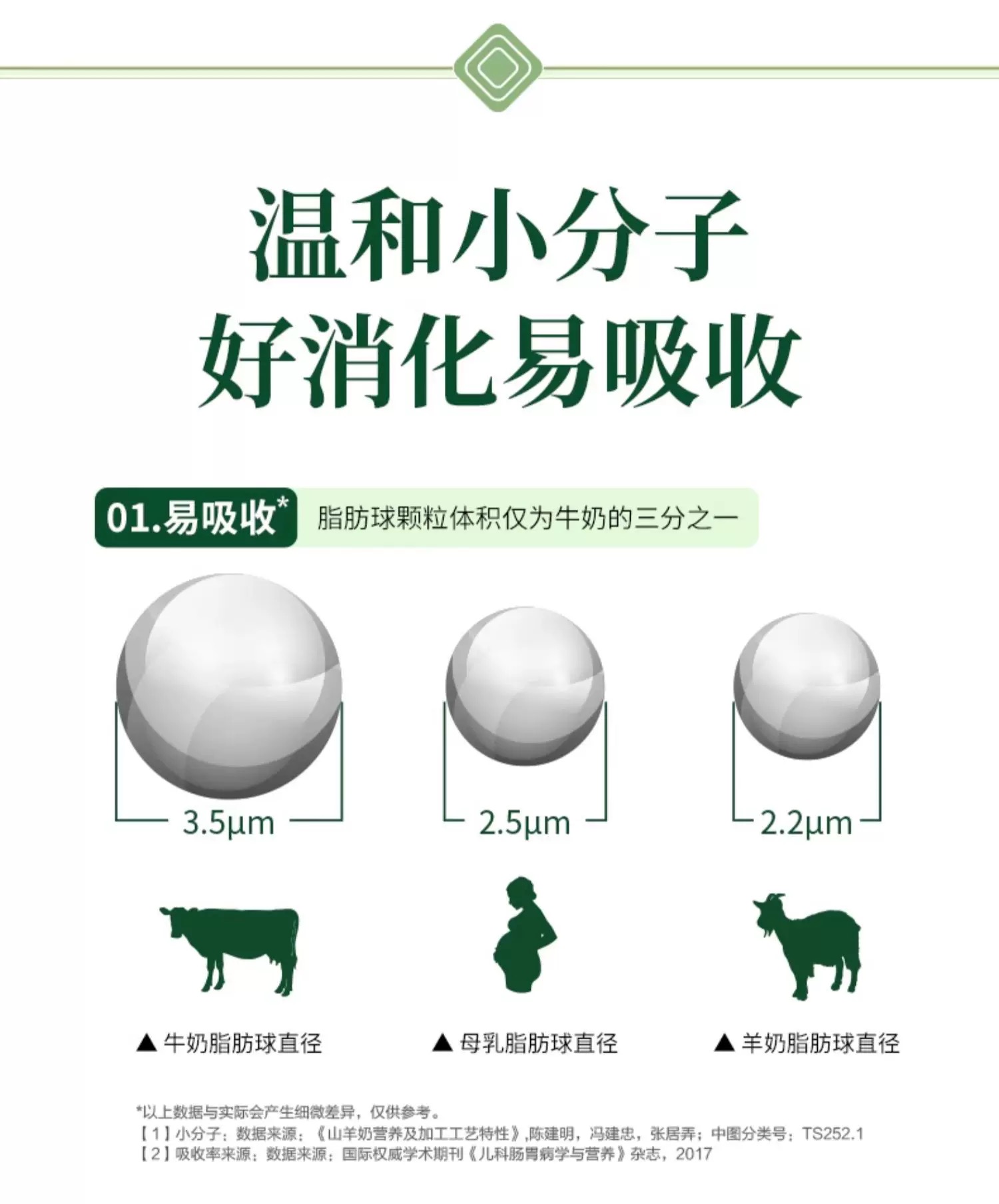 而且羊奶中易于吸收的短链脂肪较多,更容易消化吸收。羊奶的脂肪球与蛋白质颗粒只有牛奶的1/3,且颗粒大小均匀,吸收率高达89%,而牛奶的吸收率仅为30%左右。