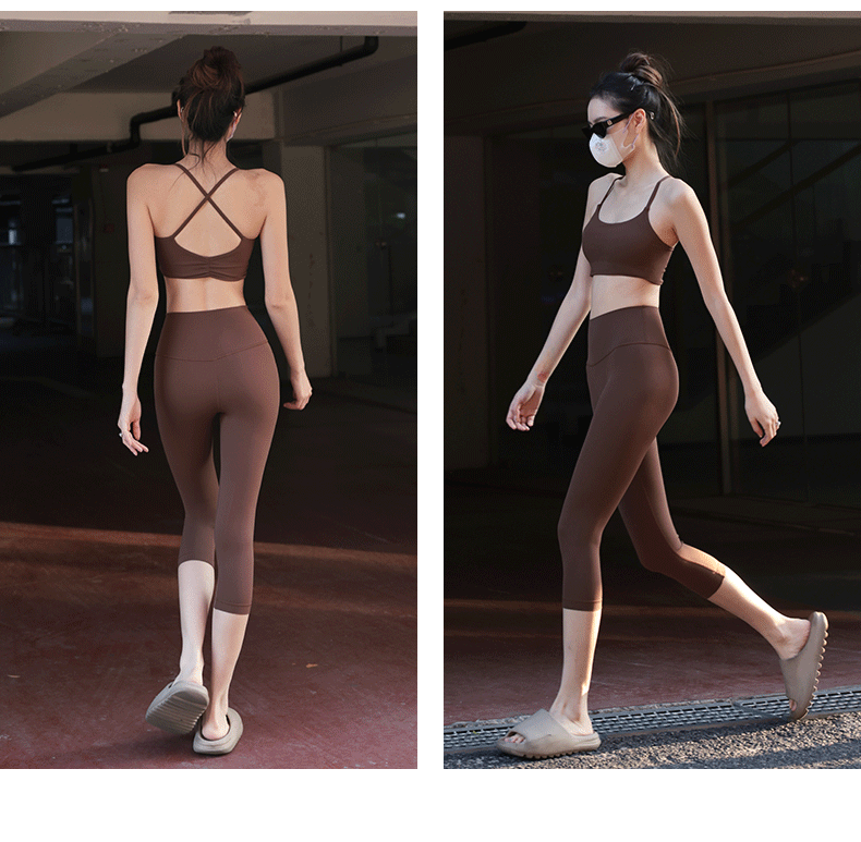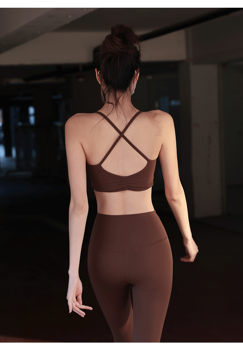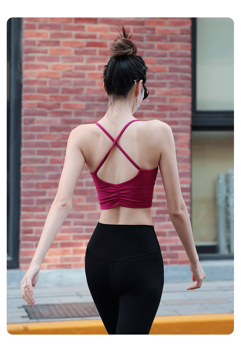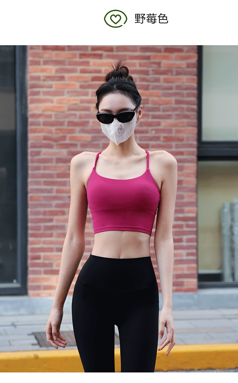 beemen低强度 裸感亲肤运动背心 可拆胸垫 瑜伽文胸细肩带运动背心