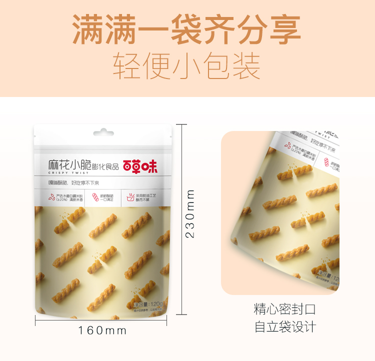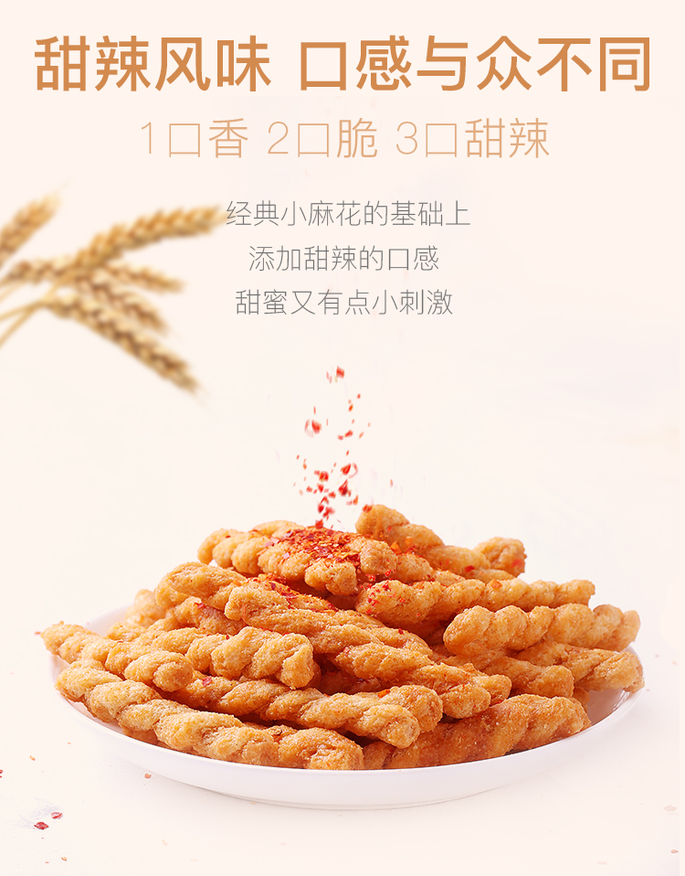 【满299减210】百草味甜辣味麻花小脆120g 6道工艺打造一根缠人的小麻花