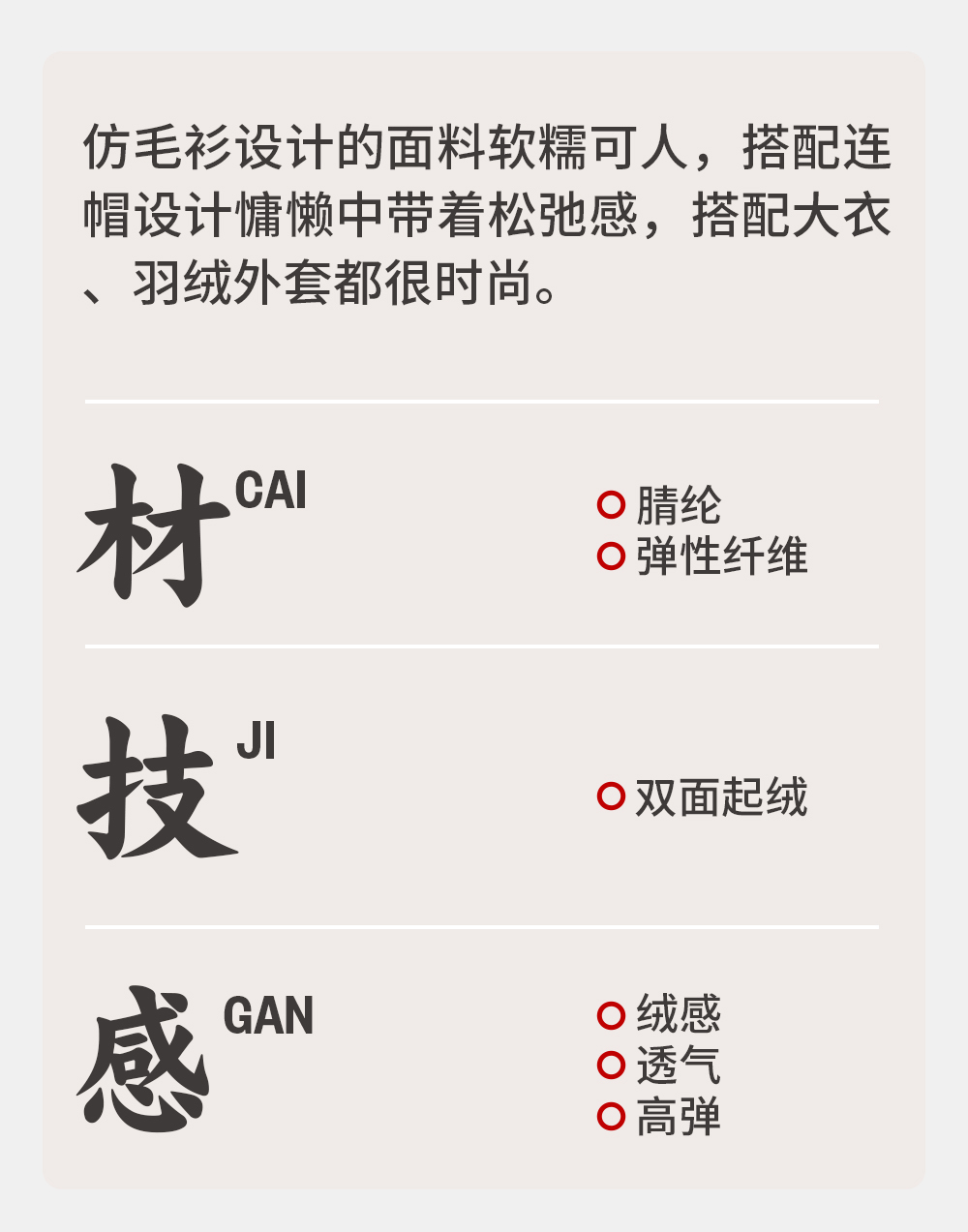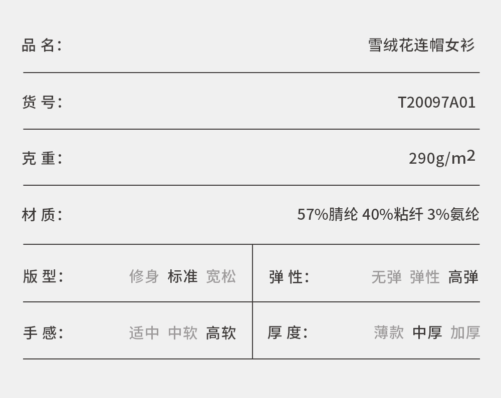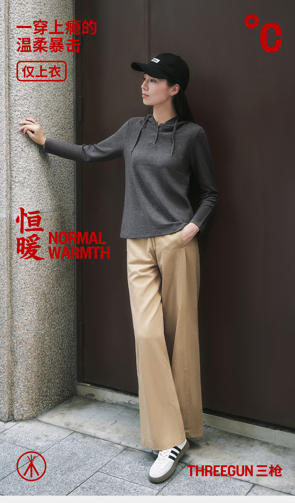 Threegun三枪 雪绒花连帽女衫-T20097A01