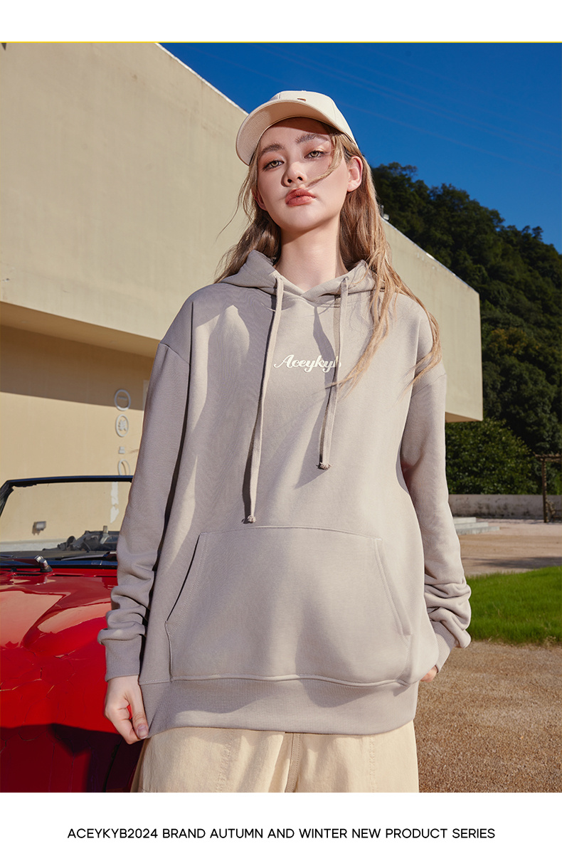 YKYB情侣连帽卫衣秋季新款百搭简约宽松帽衫上衣