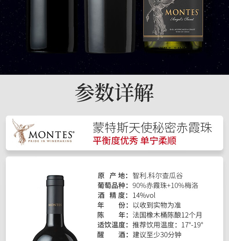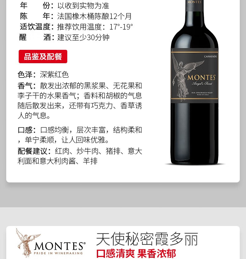 蒙特斯天使秘密赤霞珠干红葡萄酒750ml
