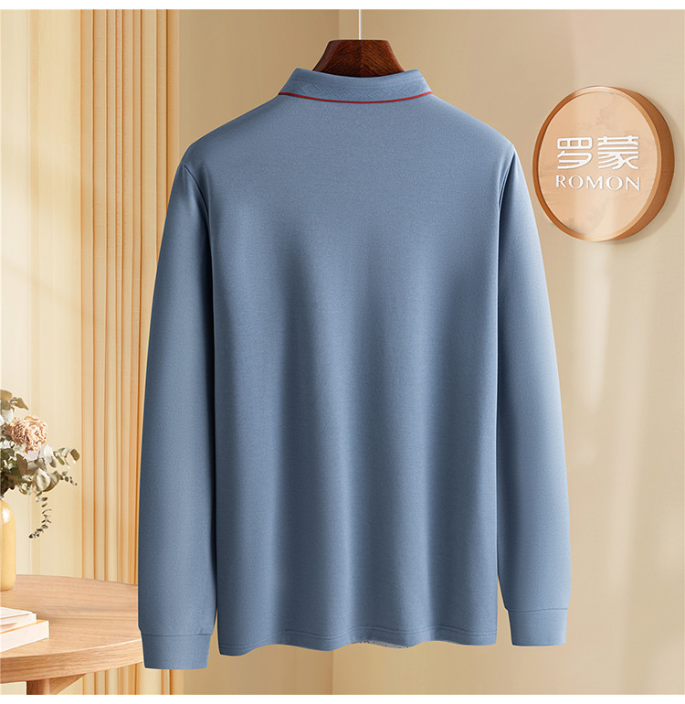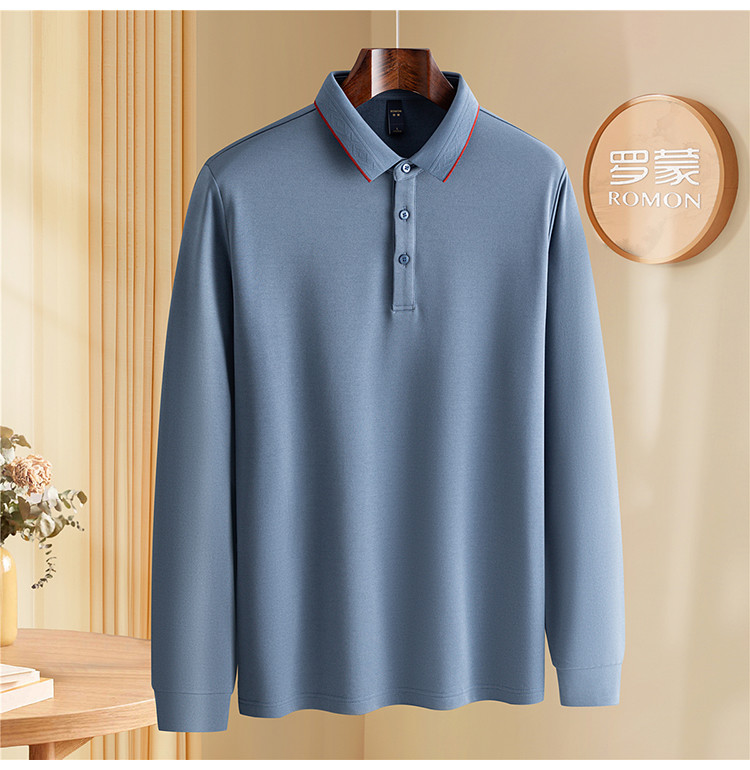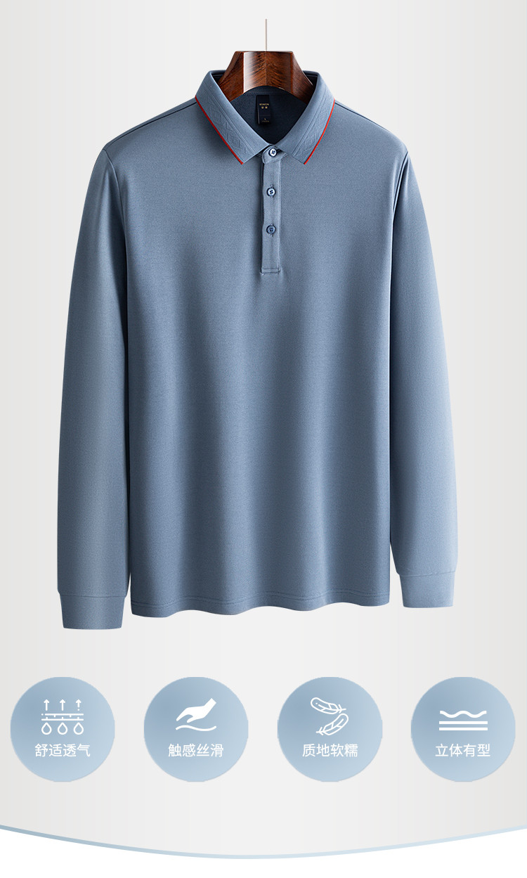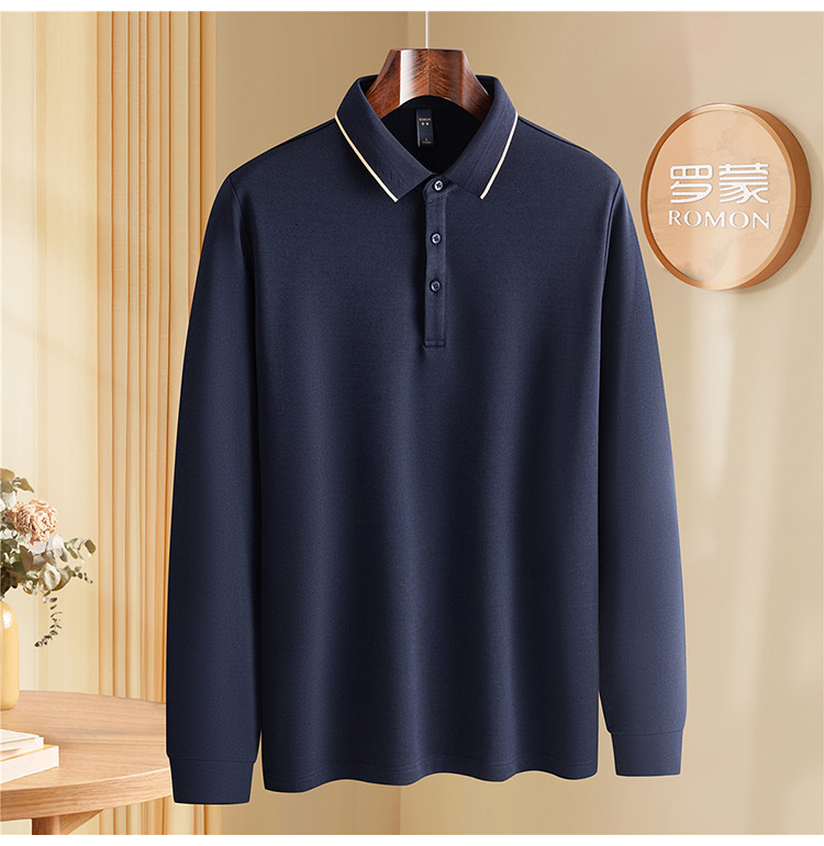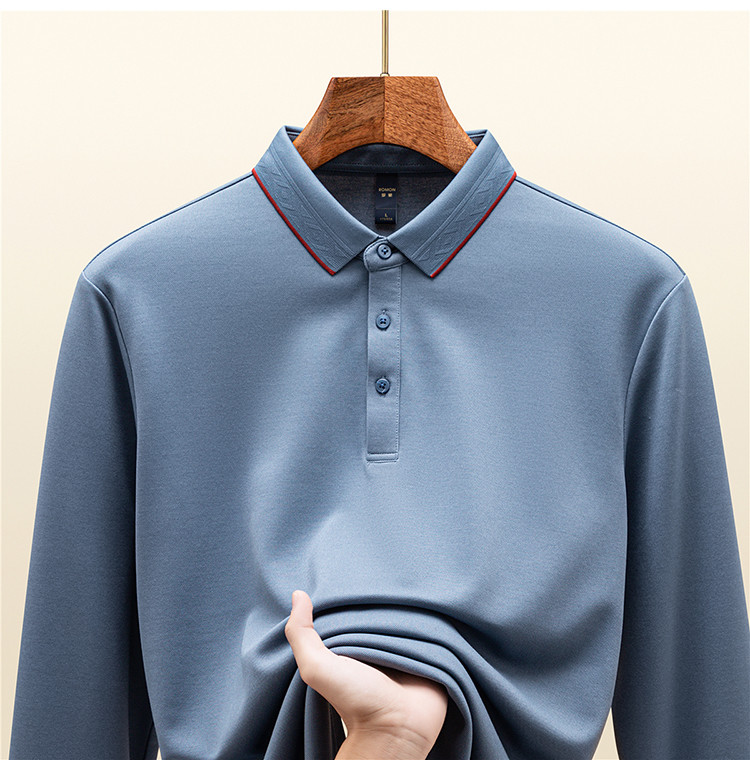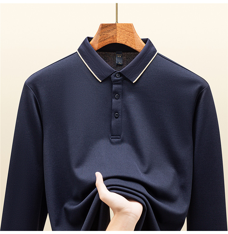 罗蒙男士秋冬保暖Polo衫含羊毛蚕丝双面磨毛撞色领商务长袖polo衫男t恤