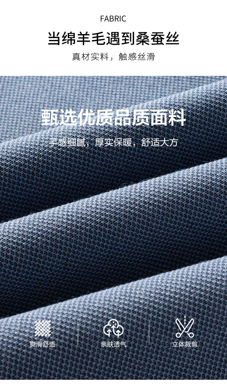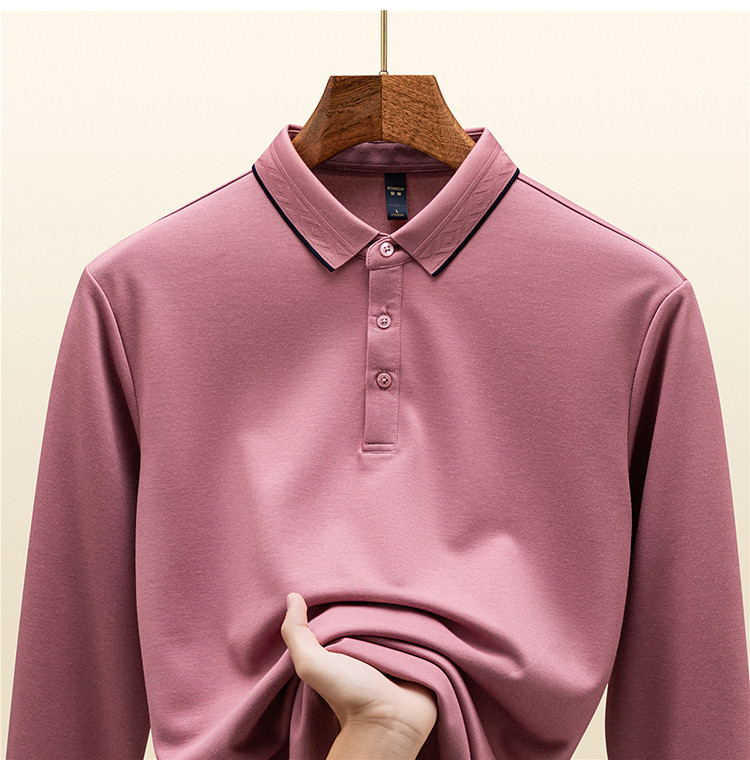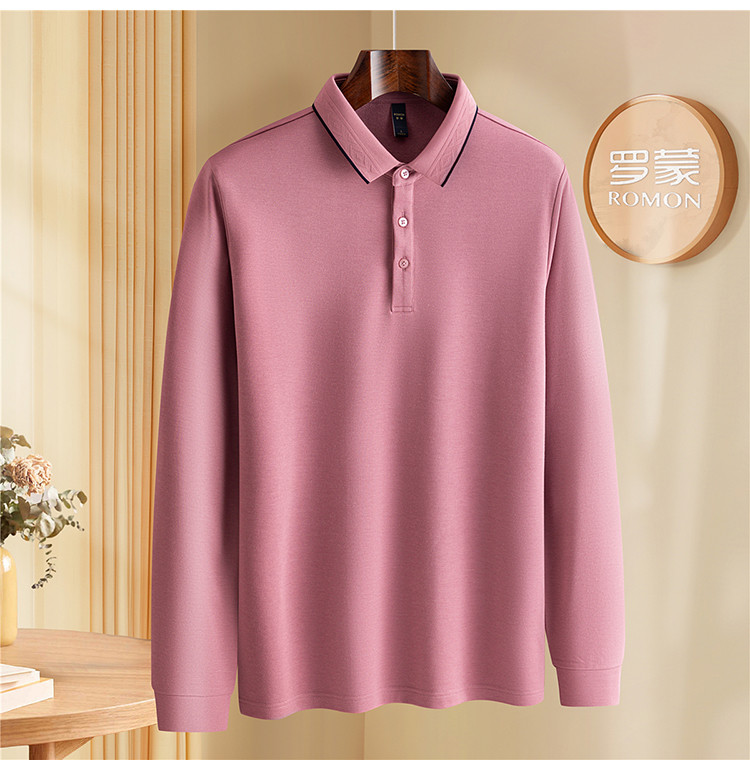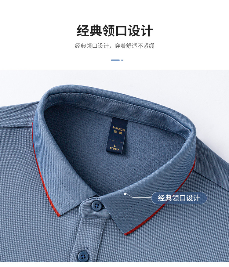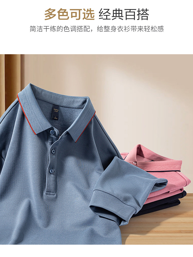 罗蒙男士秋冬保暖Polo衫含羊毛蚕丝双面磨毛撞色领商务长袖polo衫男t恤
