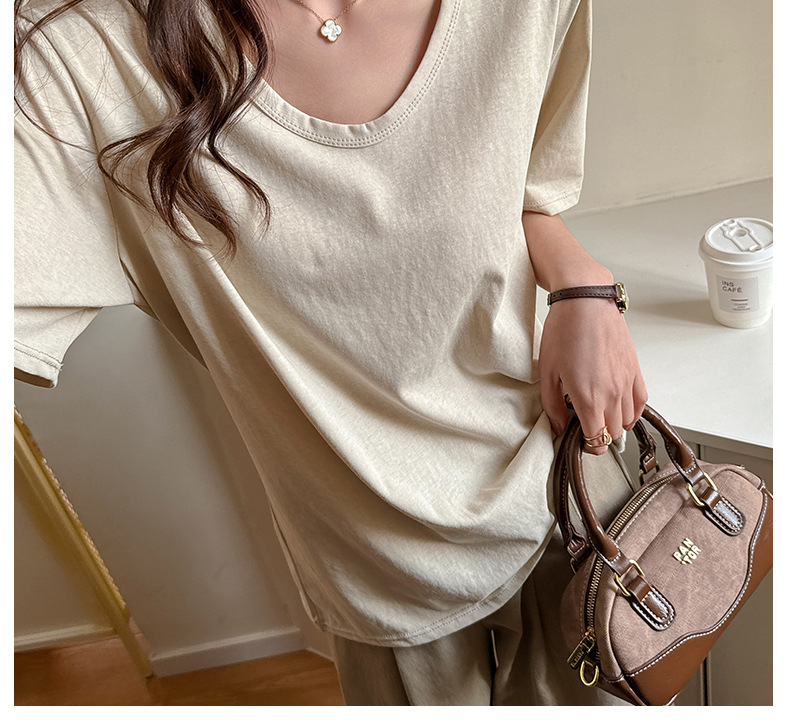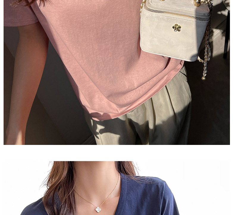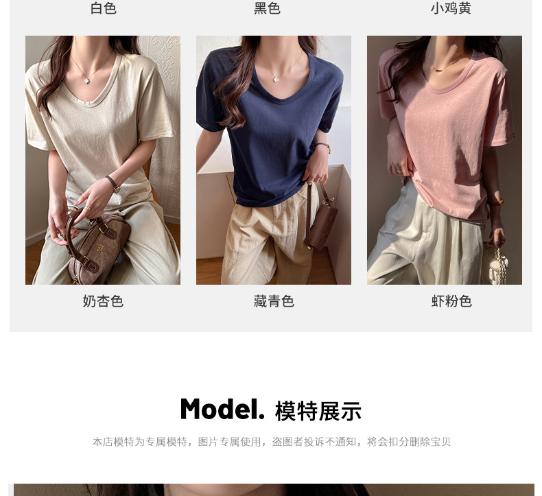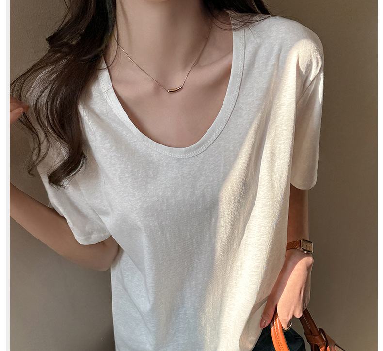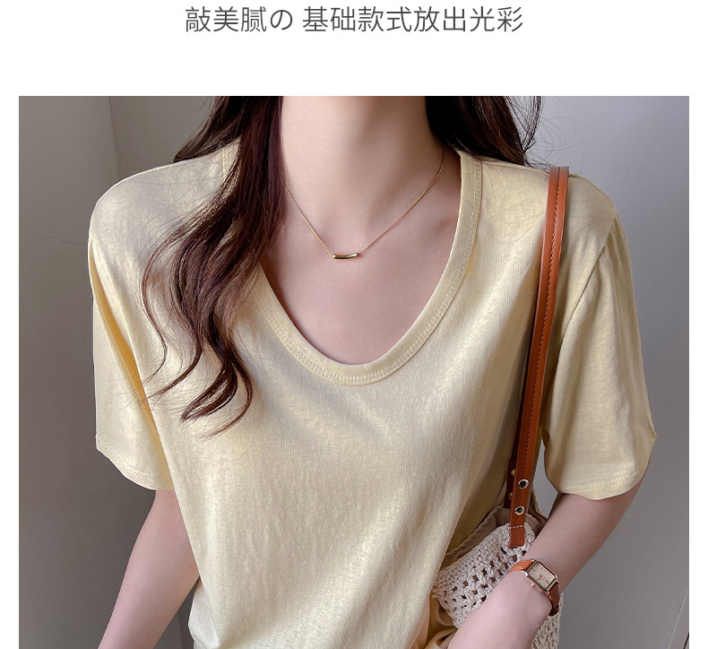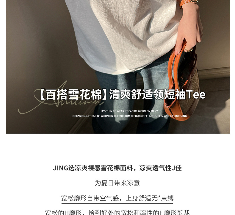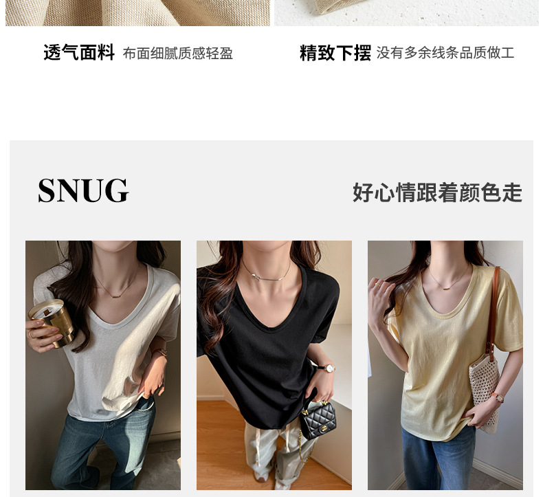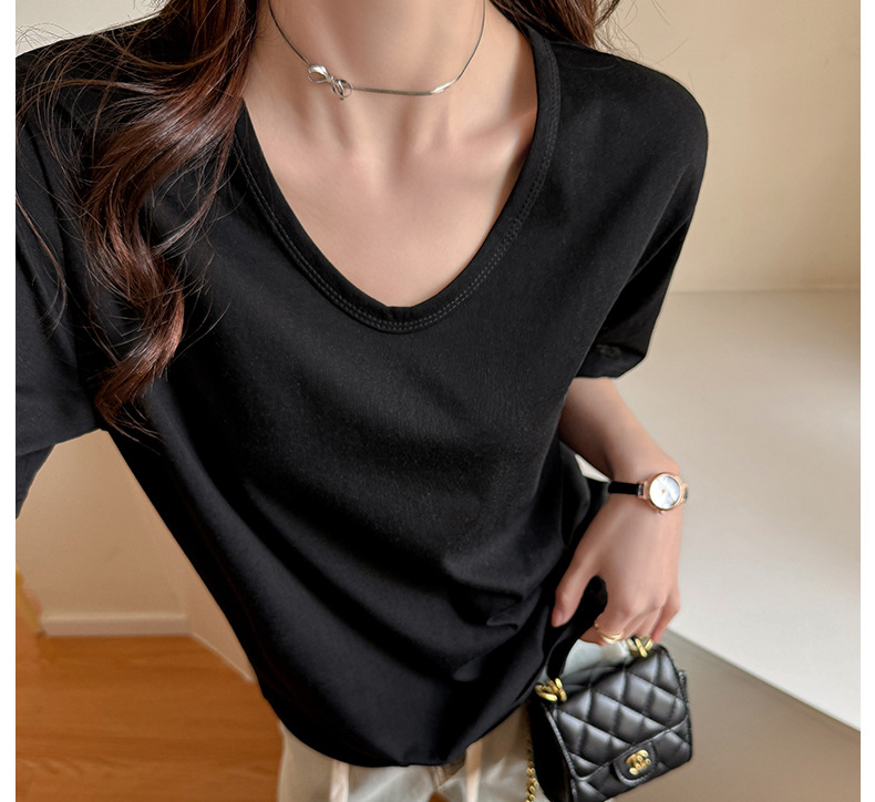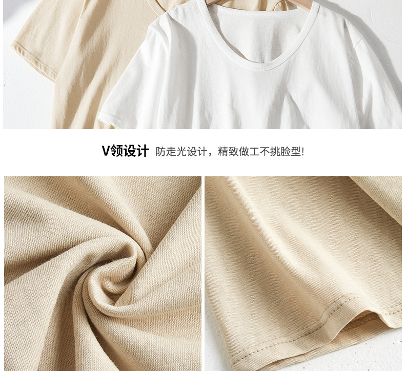 慵懒风高级感V领宽松正肩短袖t恤女式春夏季雪花棉韩系上衣打底衫 商品图6