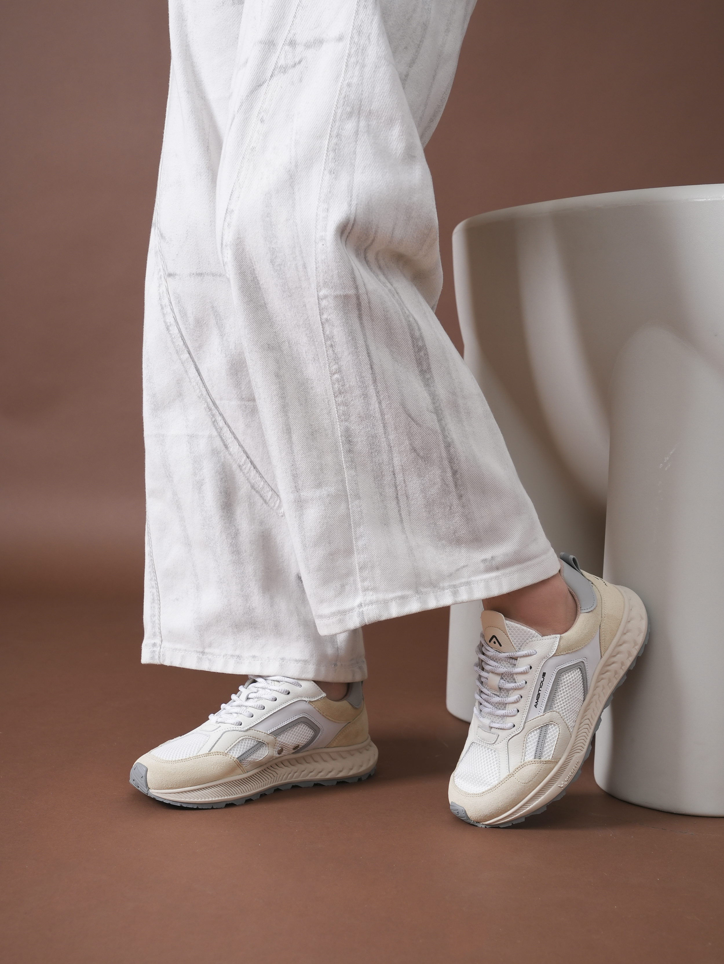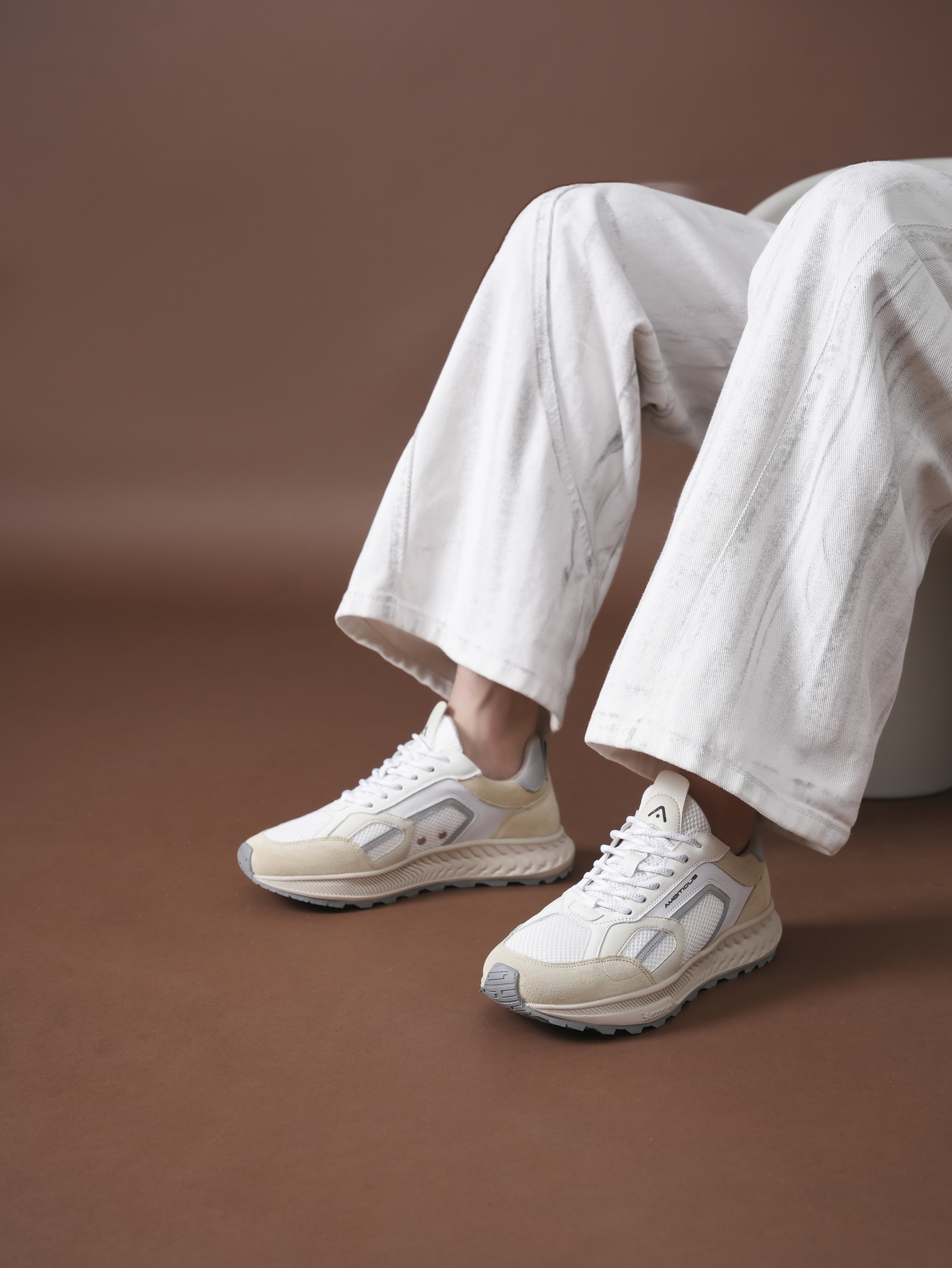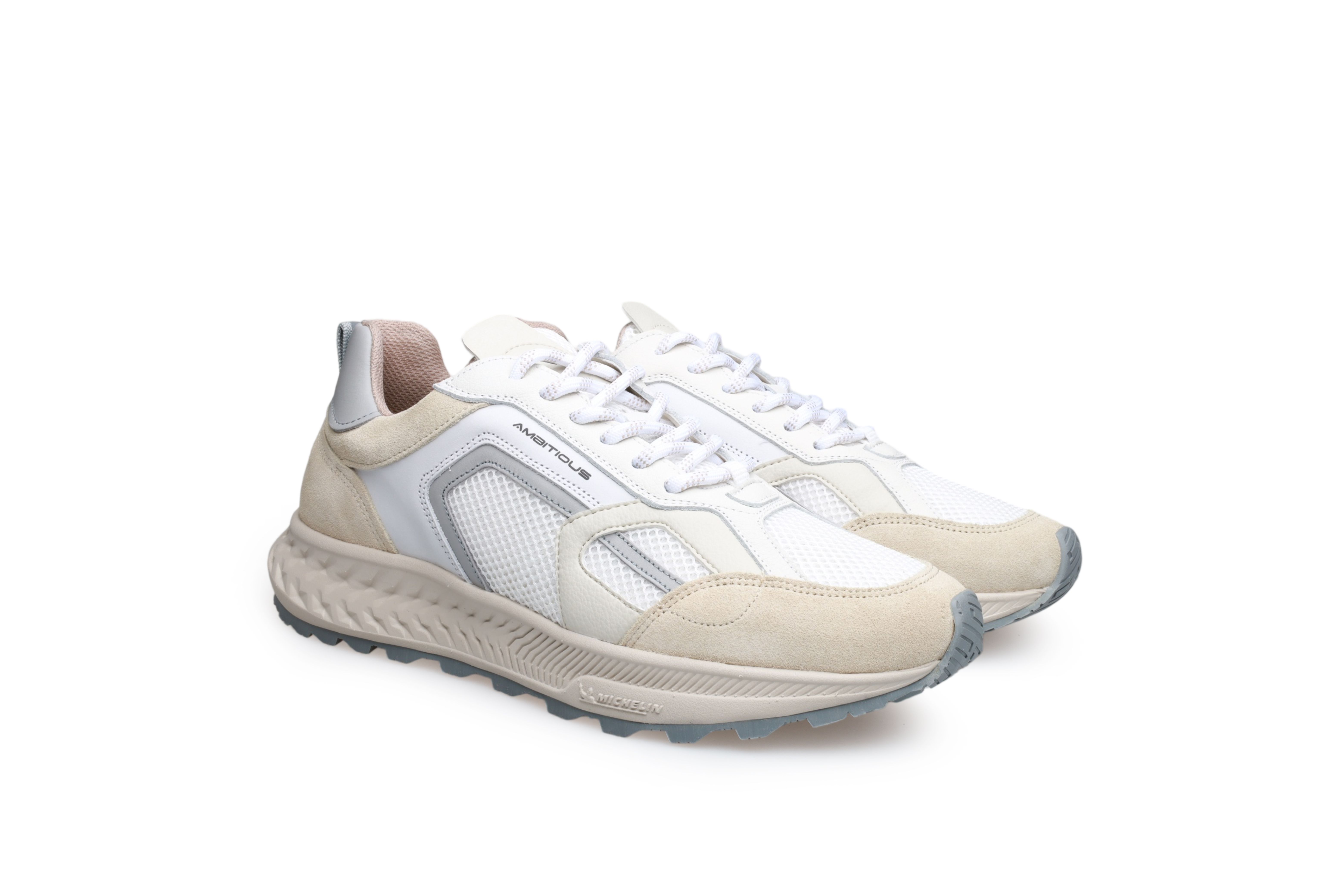 豪麟名鞋AMBITIOUS男鞋时尚休闲鞋牛皮革+织物13393T白色