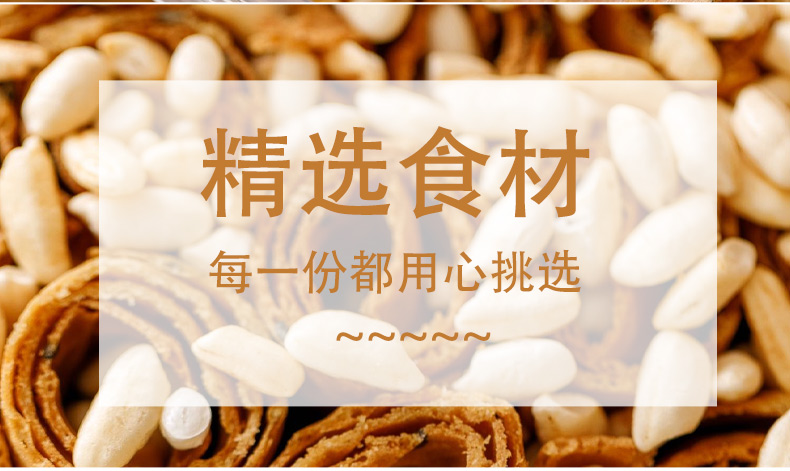 3、搭配优质小麦粉、非转基因植物油、饱满黑芝麻,没有防腐剂、没有人造奶油、没有香精色素,孩子老人都放心吃;