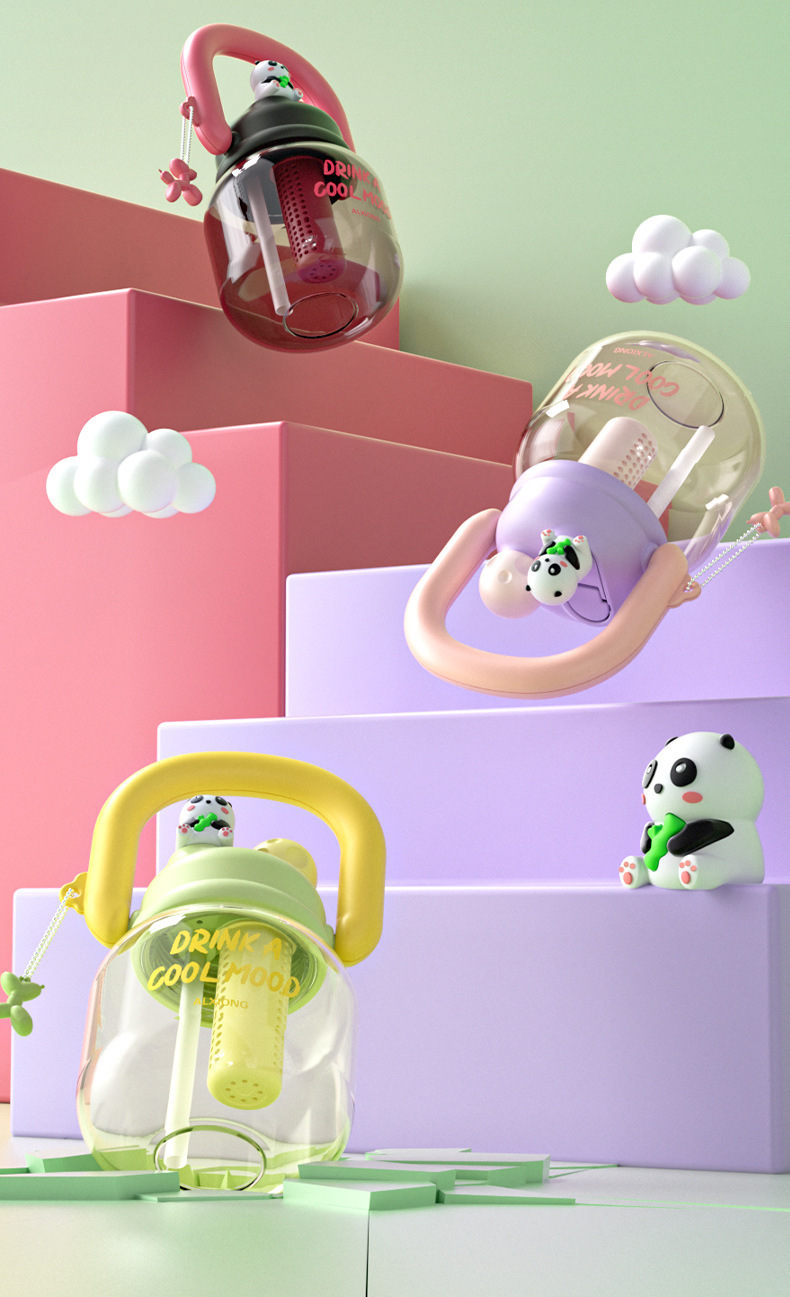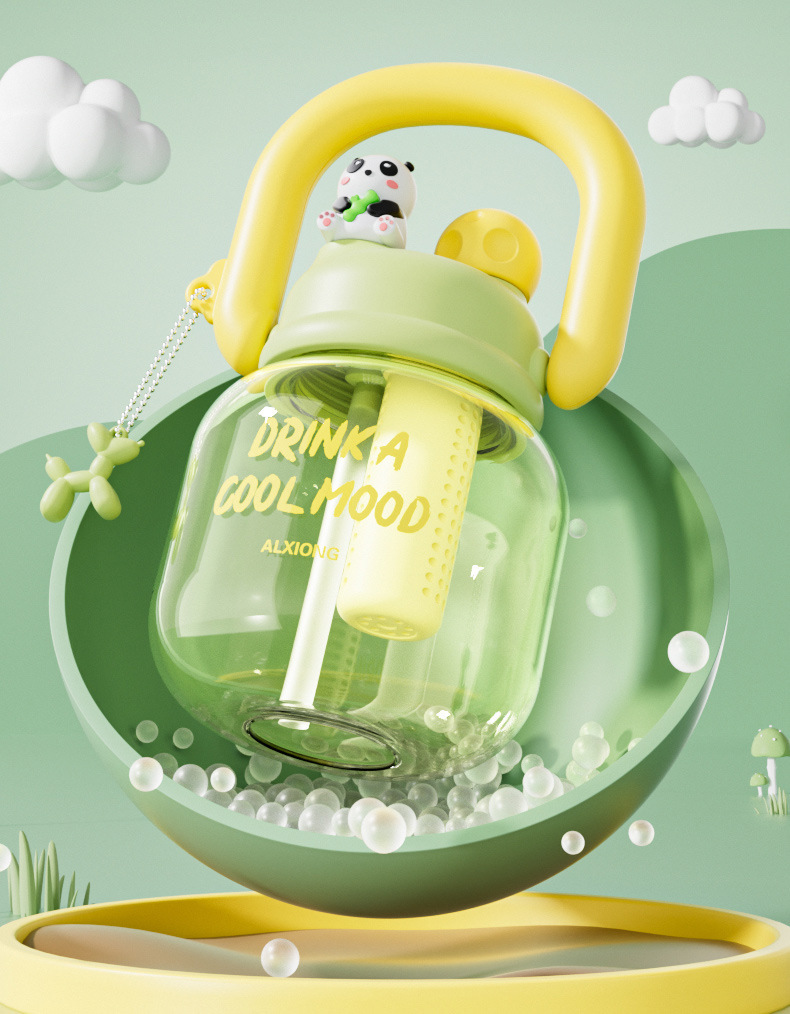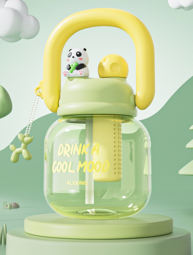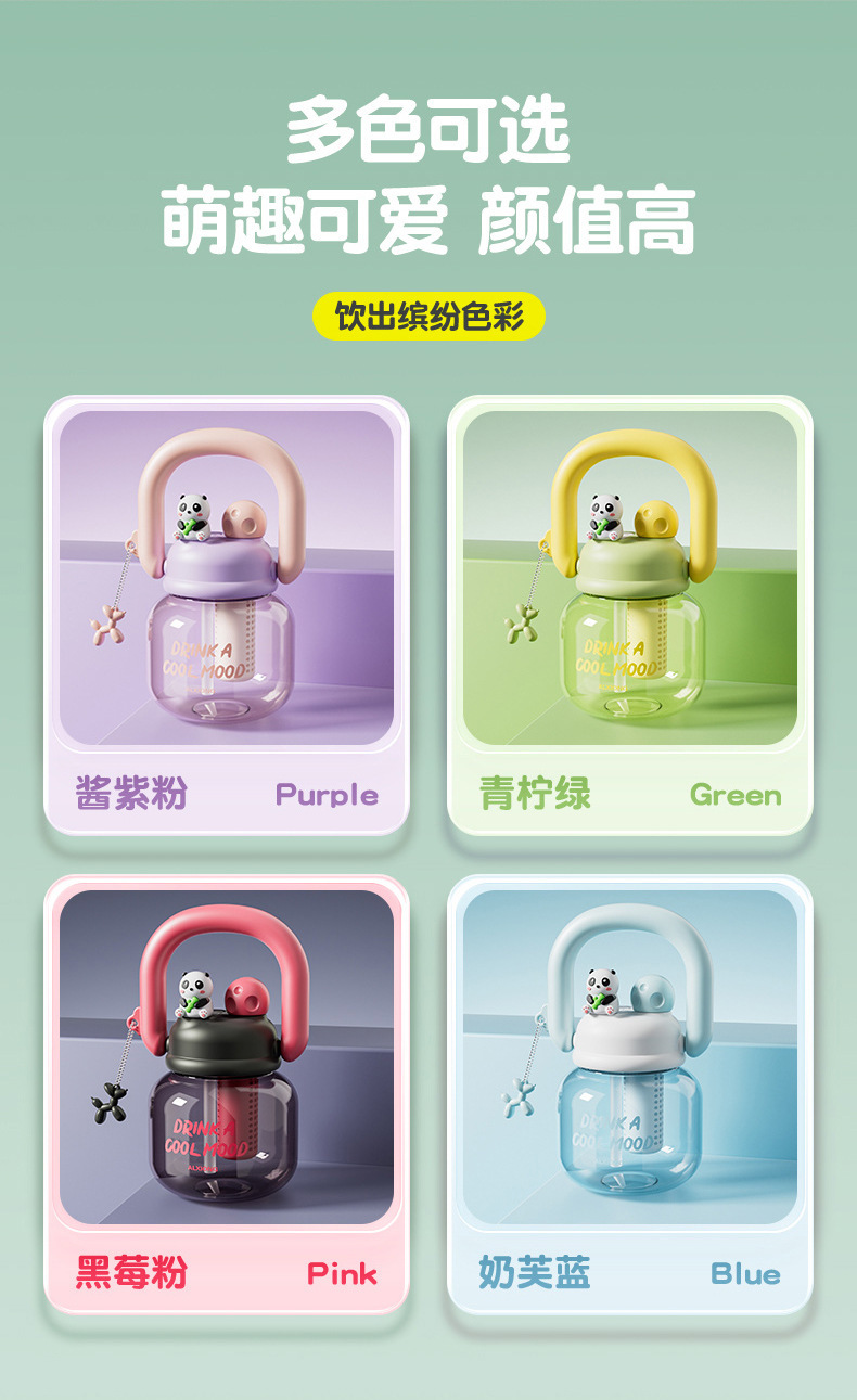 新款网红大肚杯 塑料水壶儿童水杯 大容量高颜值花茶杯带茶仓拎拎壶
