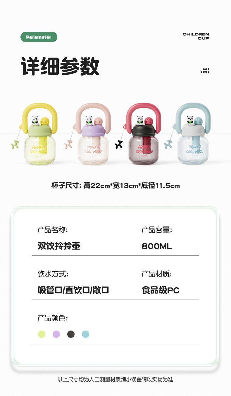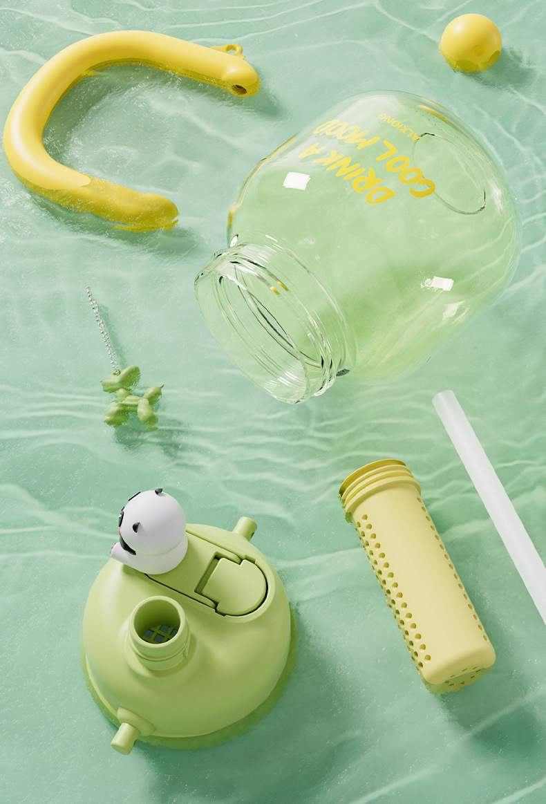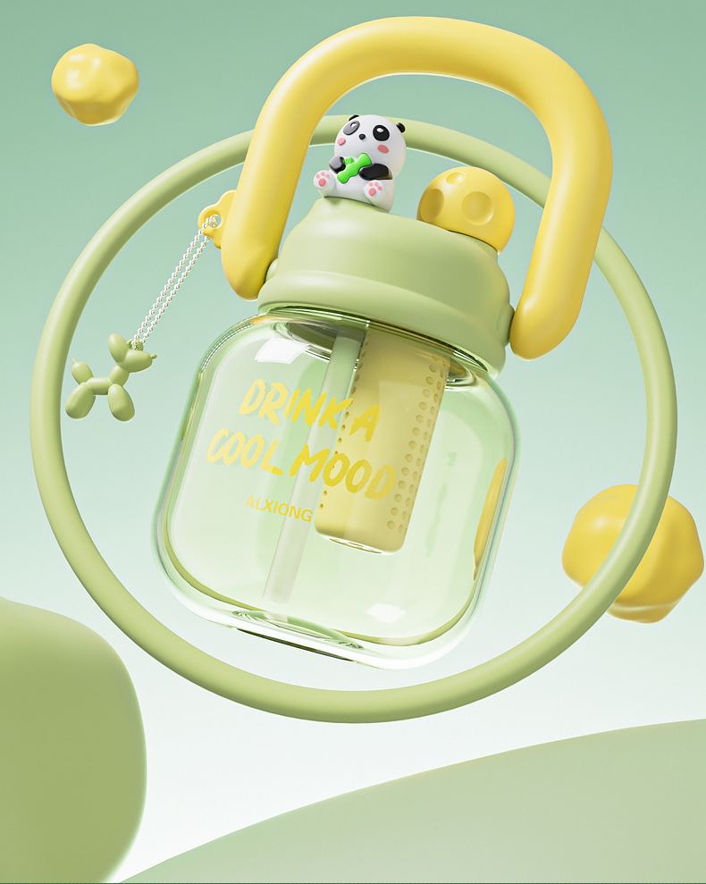 新款网红大肚杯 塑料水壶儿童水杯 大容量高颜值花茶杯带茶仓拎拎壶