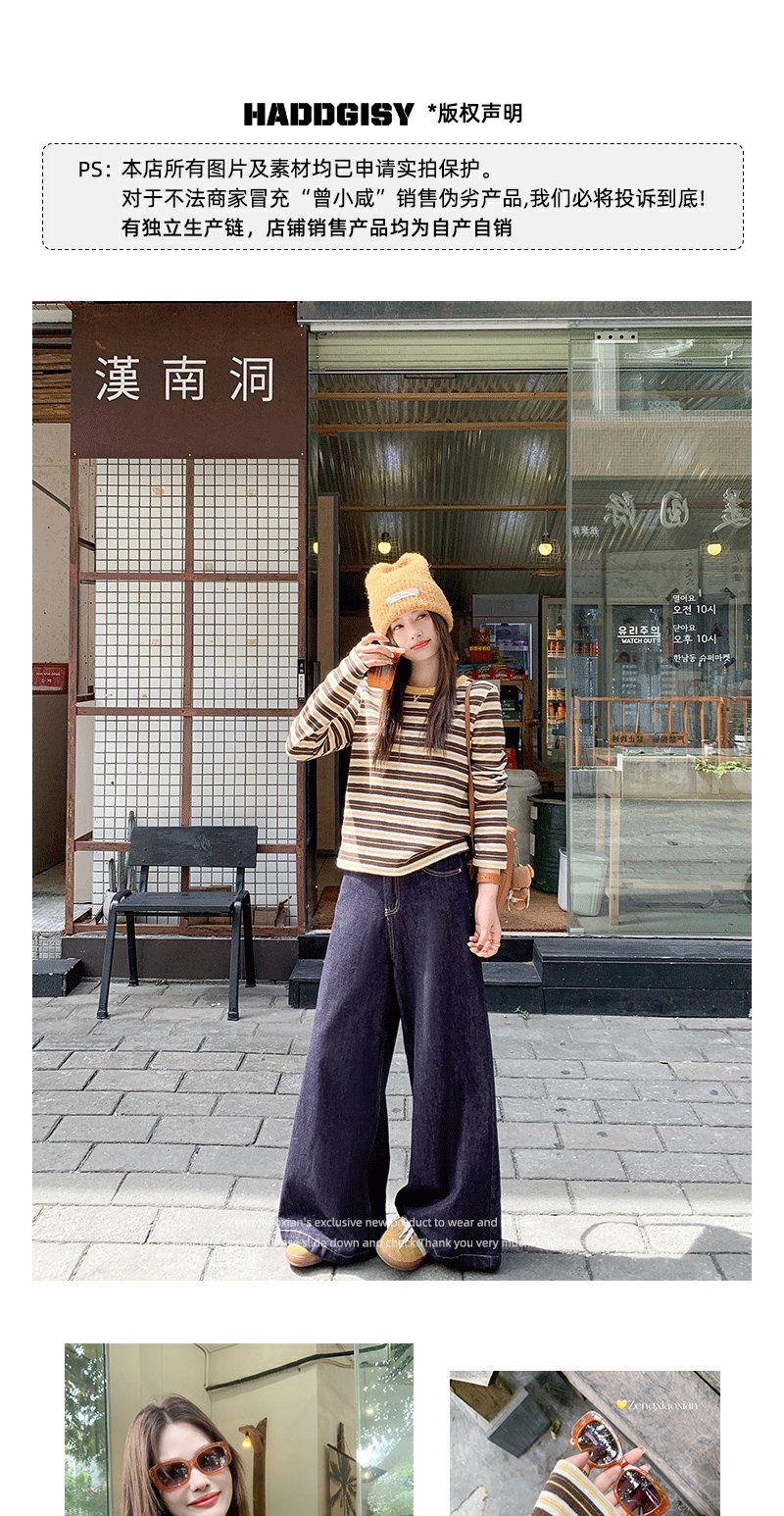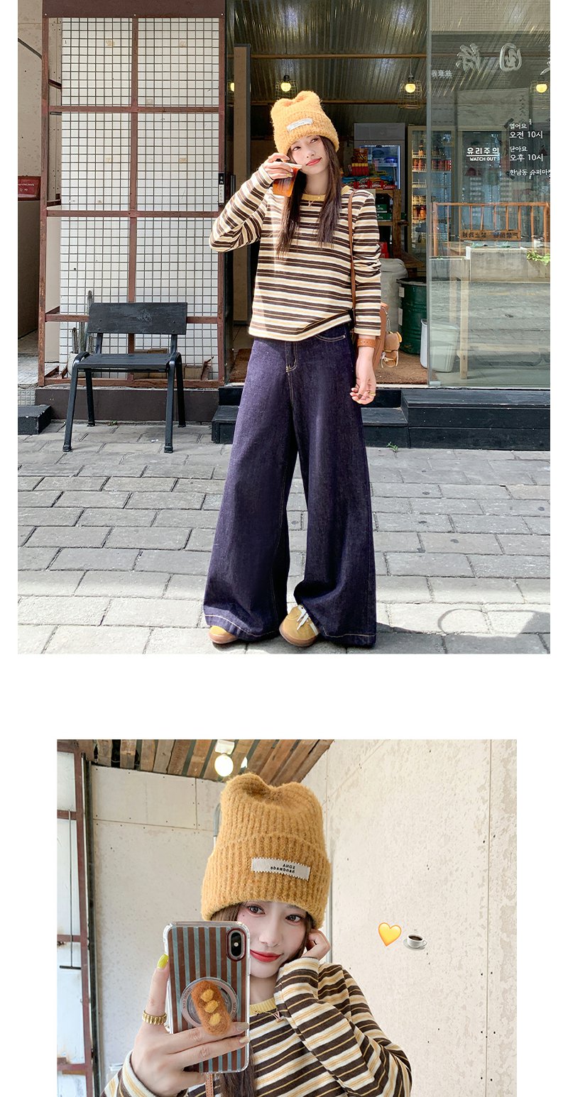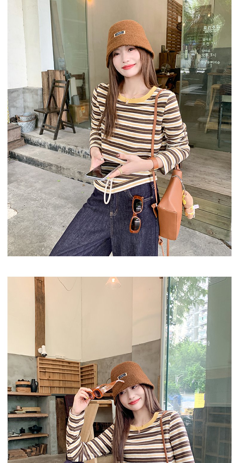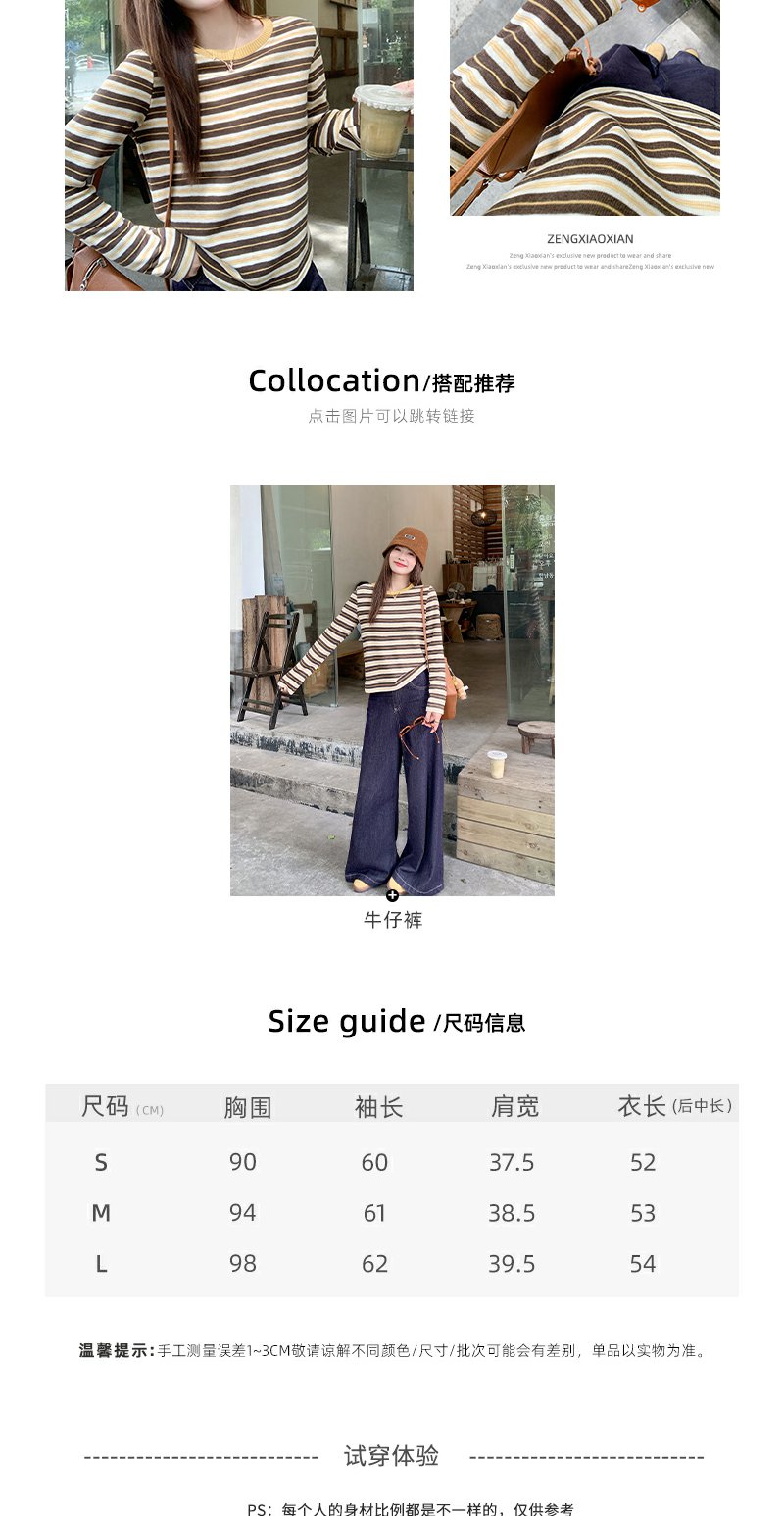 <曾小咸推荐>杏咖条纹宽松长袖休闲T恤