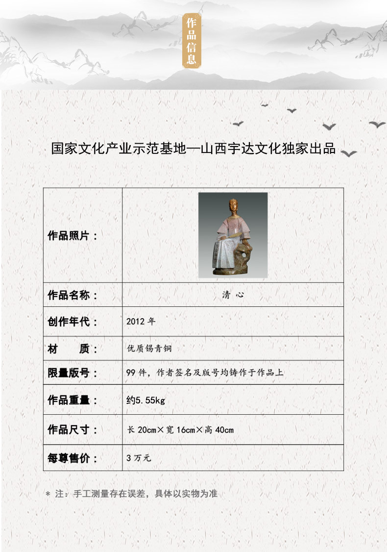 宇达青铜文化 限量99版 青铜雕塑艺术品 《清心》 作者:简锡昭 高40cm