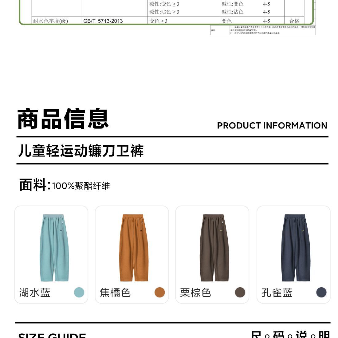 【速干抗菌】咕噜日记儿童弯刀裤2025新款男女童休闲卫裤轻量长裤PQK2516