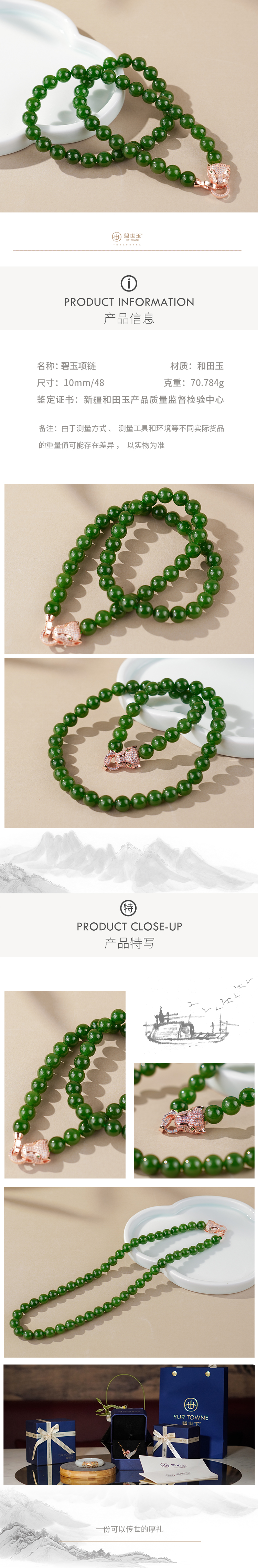 新疆国玉盟世玉碧玉项链【带证书·顺丰物流】