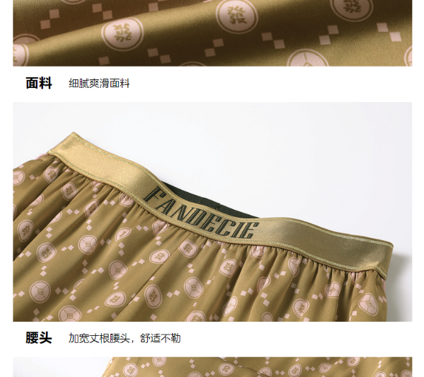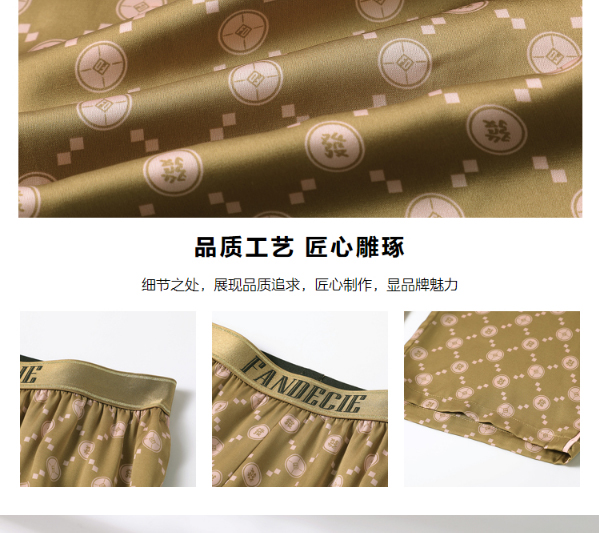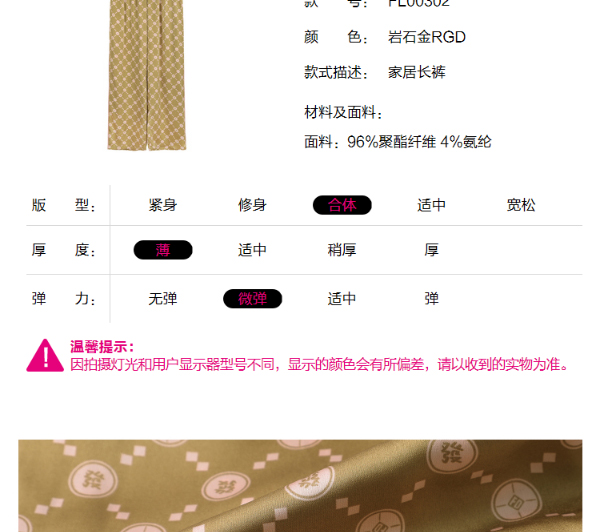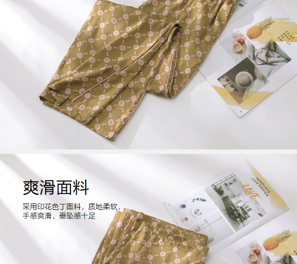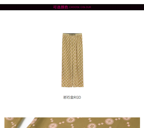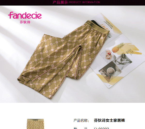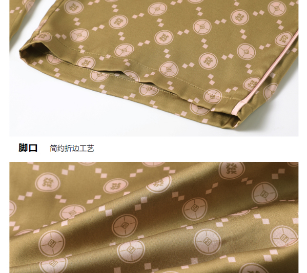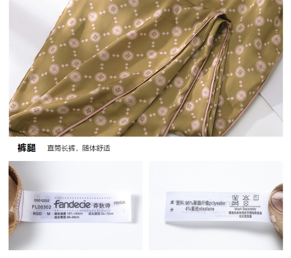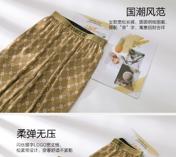 芬狄诗女士国潮时尚印花宽松直筒裤丝滑缎面家居裤可外穿FL00302