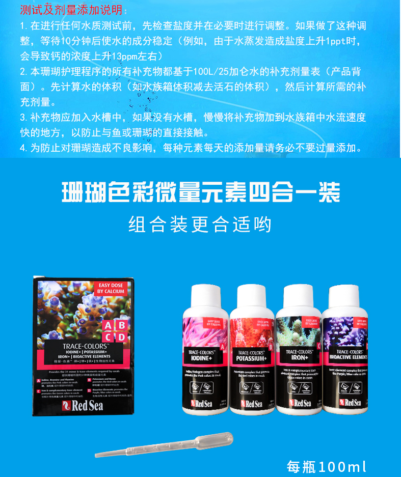 红海Red Sea珊瑚缸LPS海水微量元素SPS珊瑚增色色素色彩补充剂