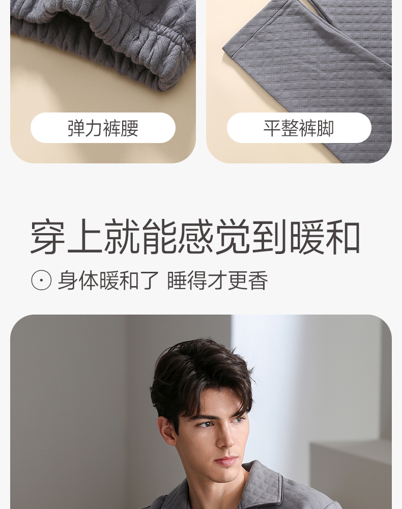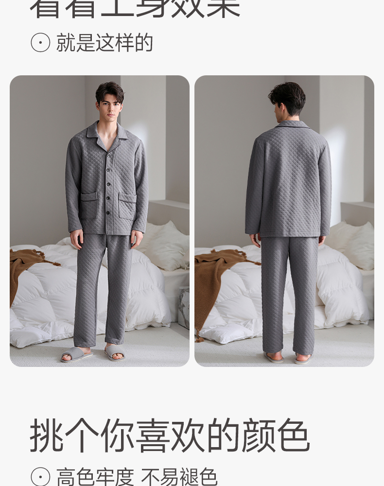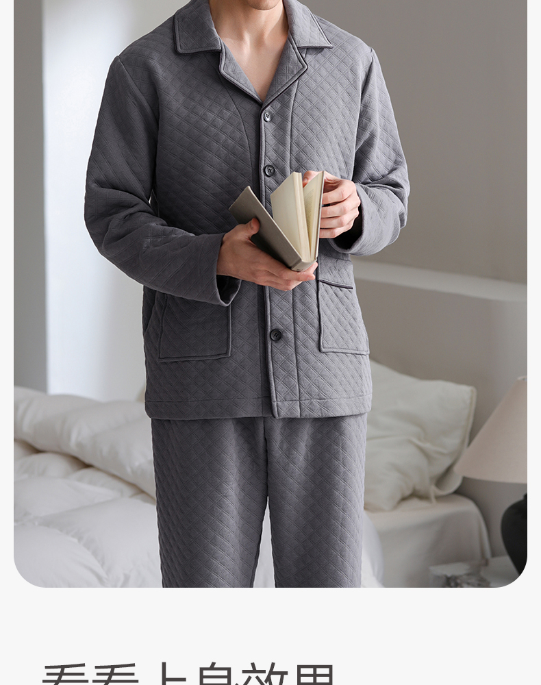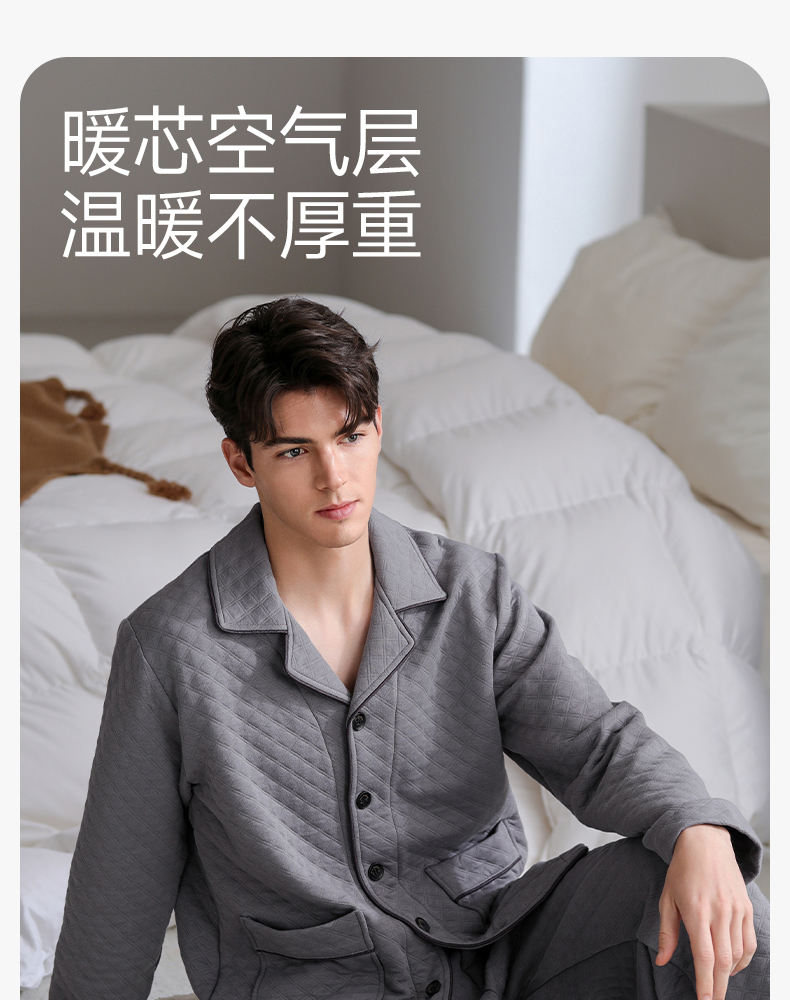 芬腾睡衣男空气棉夹层秋冬纯棉长袖套装青年宽松加大码家居服春秋