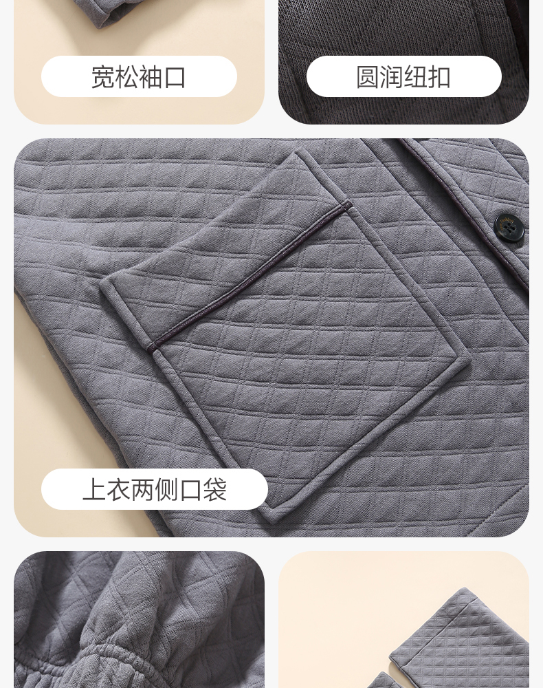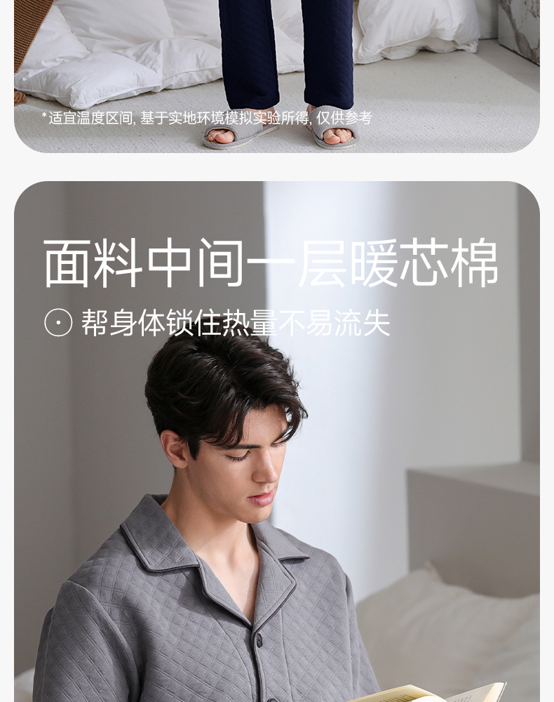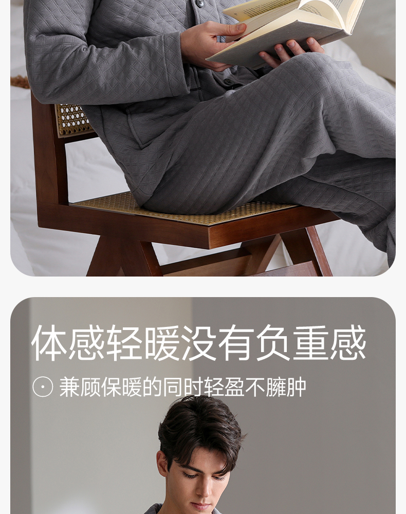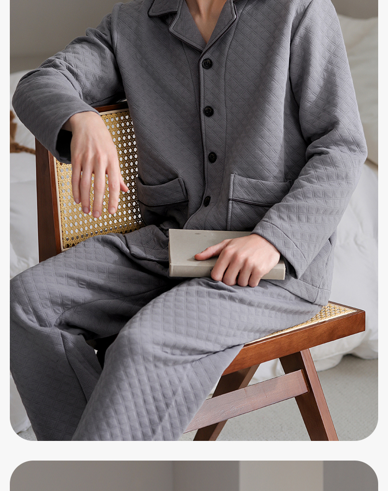 芬腾睡衣男空气棉夹层秋冬纯棉长袖套装青年宽松加大码家居服春秋